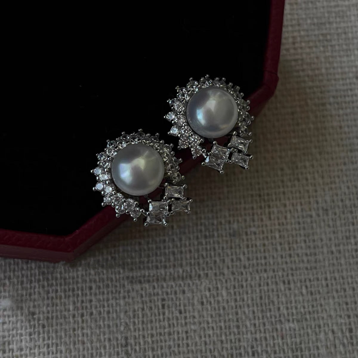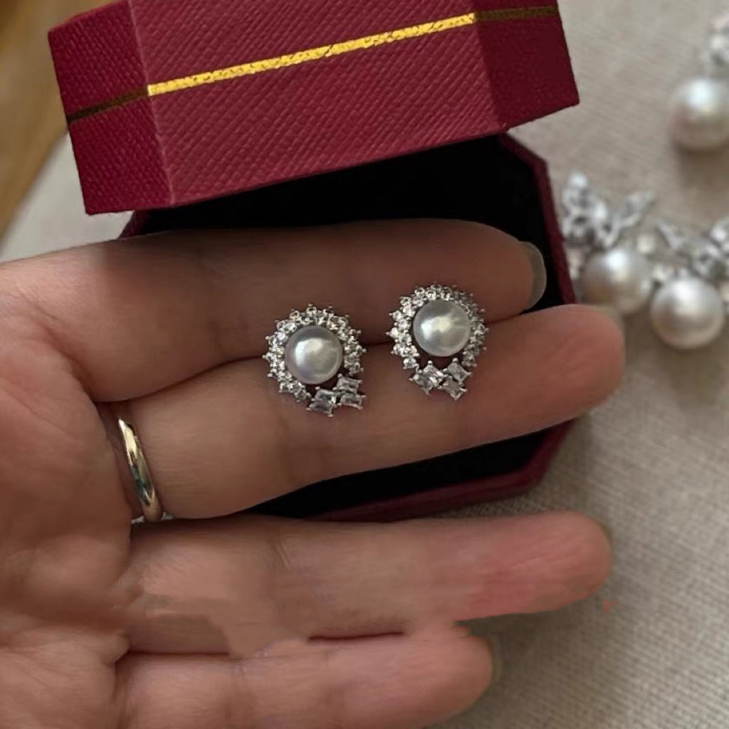 S925 Sterling Silver Cultured Freshwater Pearl Button Stud Earrings Vintage Jewelry for Women