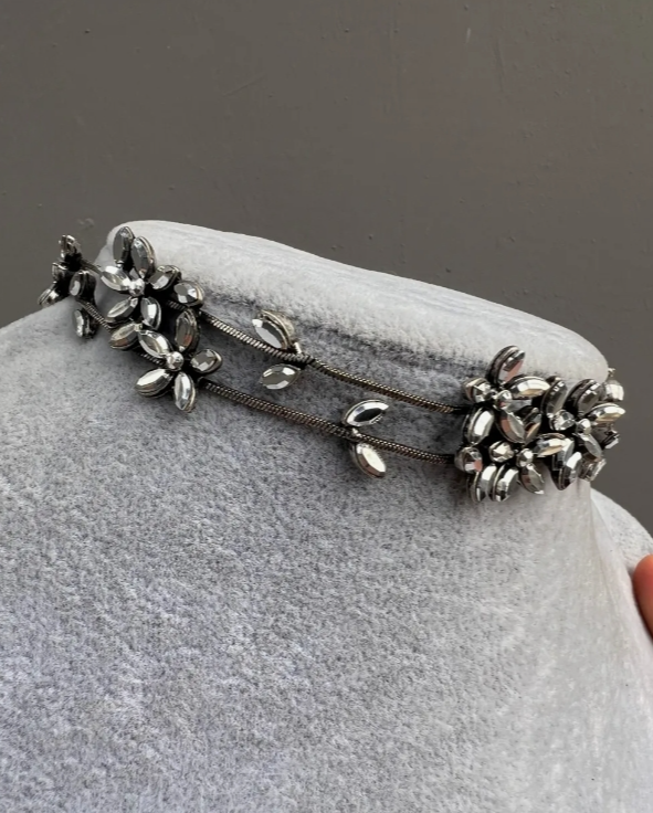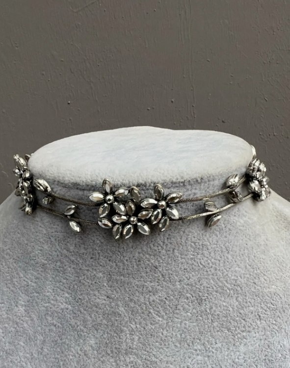 Adorable Chunky Niche Silver Copper Punk Flower Pendant Necklace Choker Chain for Women