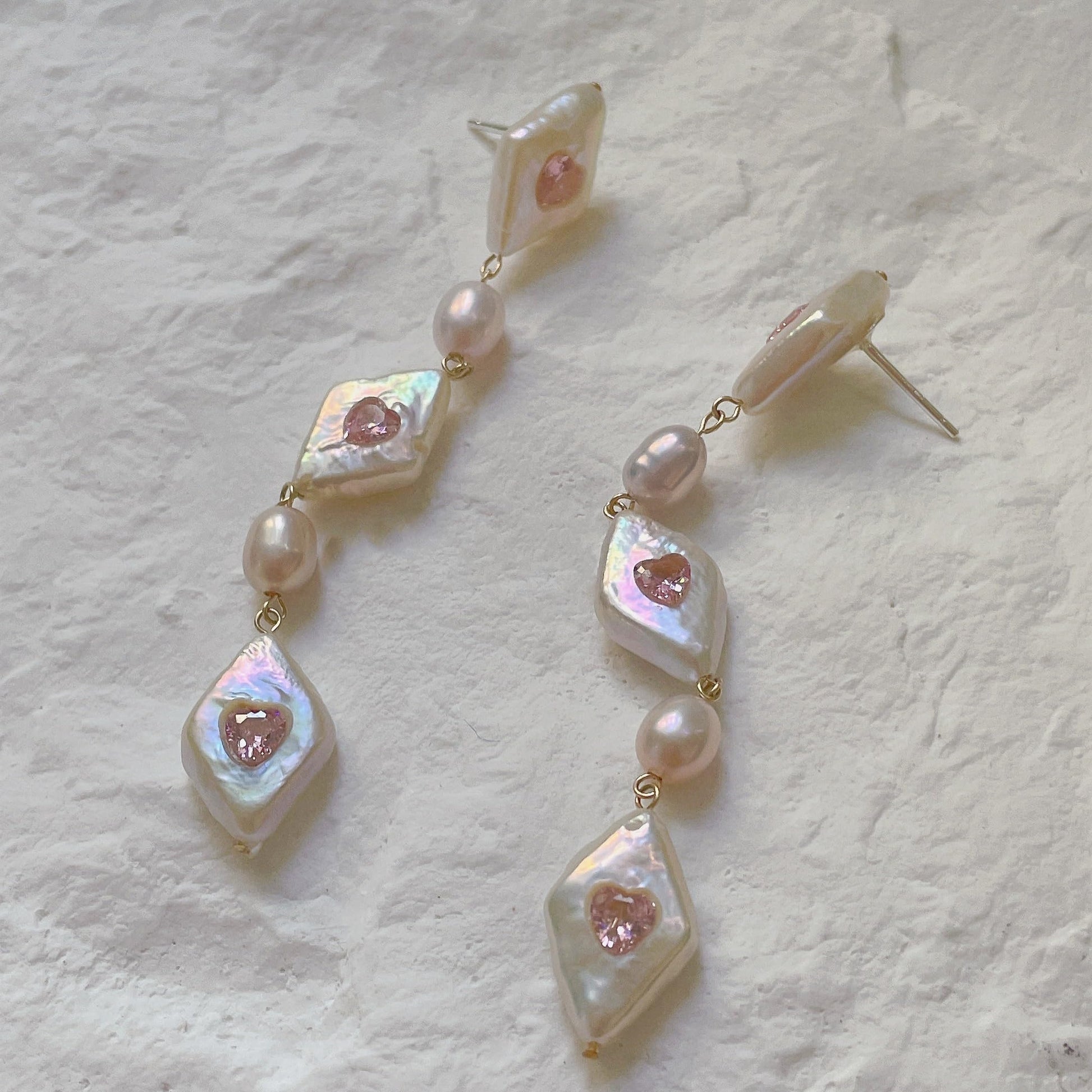 Our Baroque Diamond-Encrusted Pink Heart Gemstone Sterling Silver Earrings are more than just a pair of earrings; they are a symbol of your unique style and a celebration of the beauty found in nature's imperfections. With their captivating design and luxurious materials, these earrings are a must-have for any woman who values the elegance of individual expression.