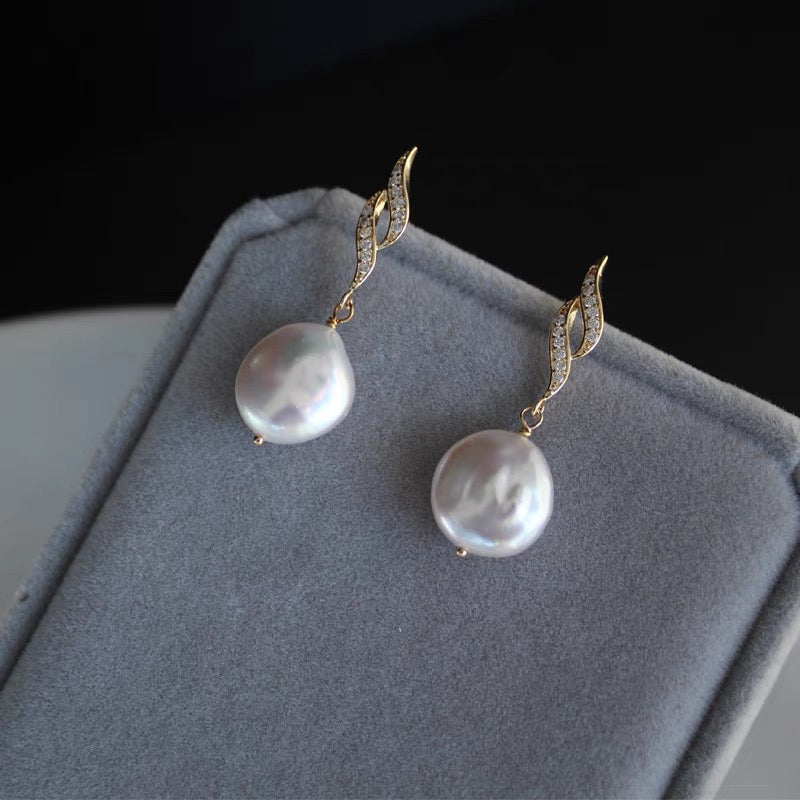 Material: 14K Gold plated 925 silver earring and Baroque Pearl