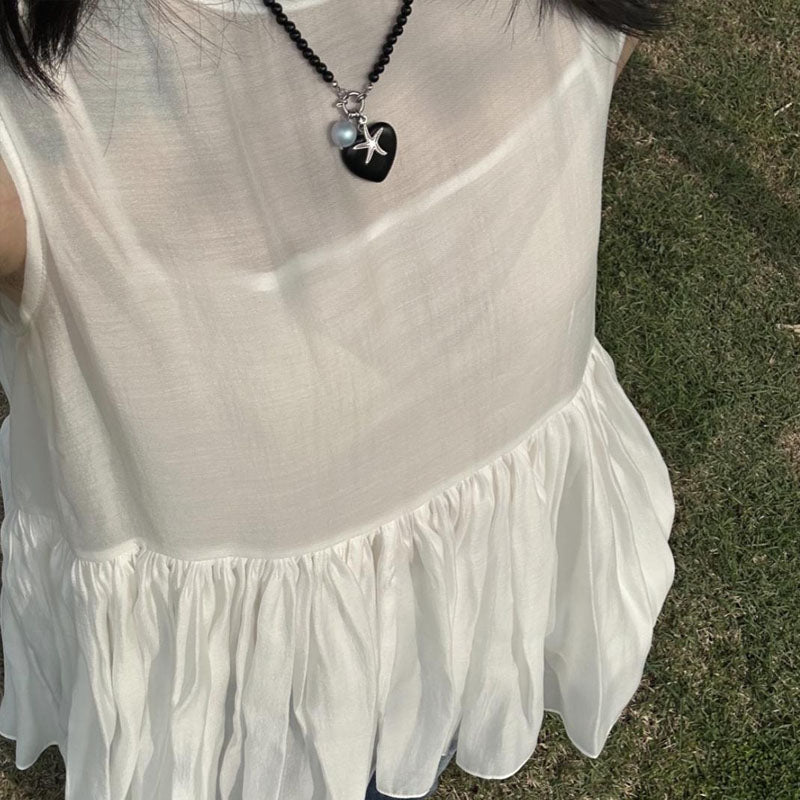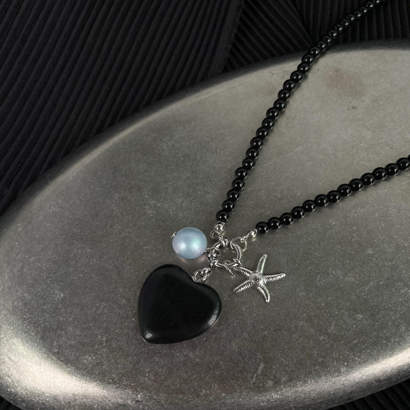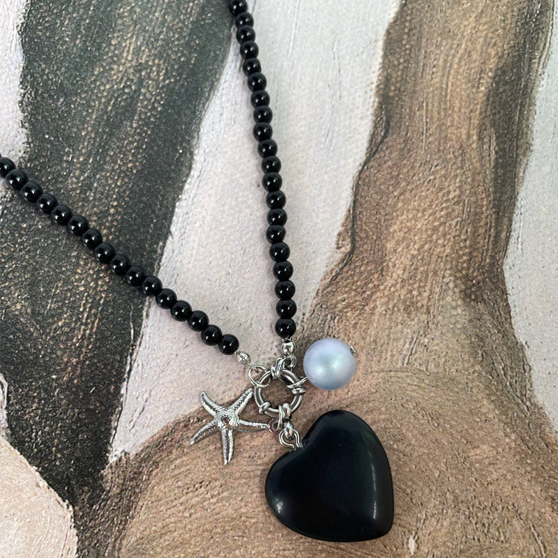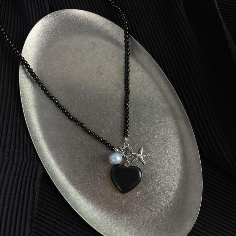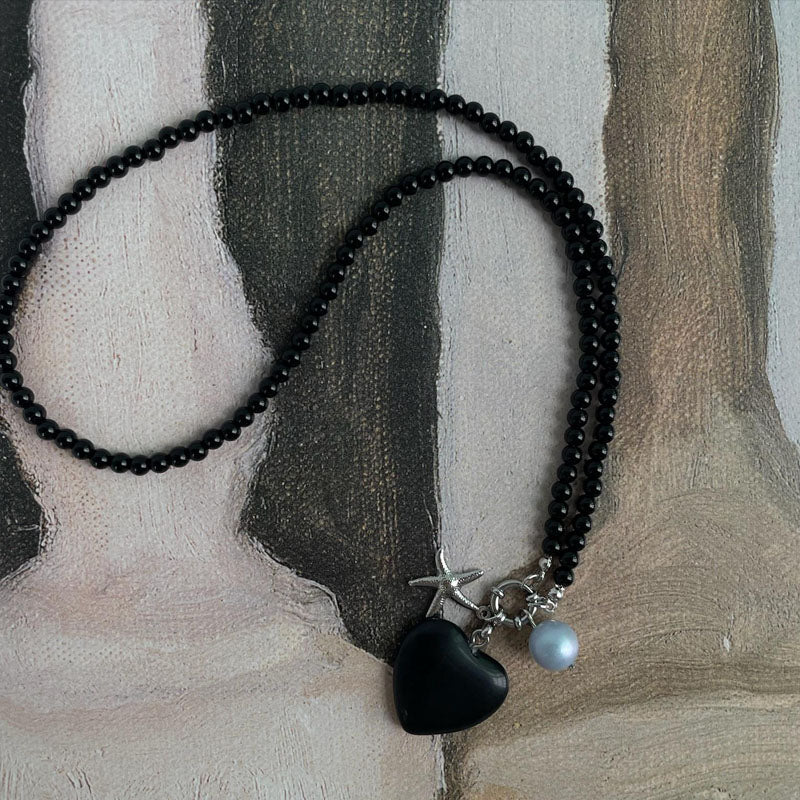 Black Agate Necklace Heart Shaped Pendant Necklace for Women