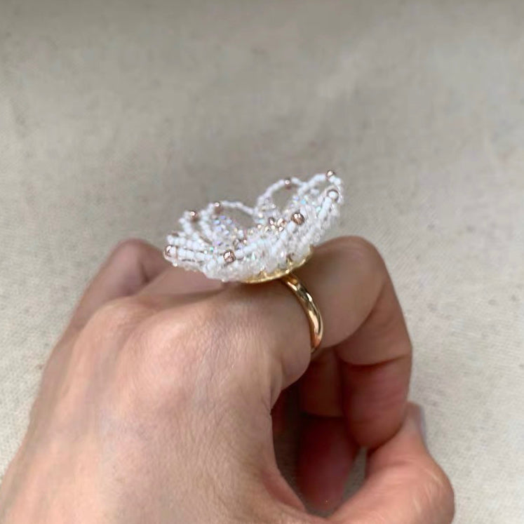 Blooming Flower Ring Colorful Exaggerate Adjustable Bead Finger Rings for Vacation Holiday