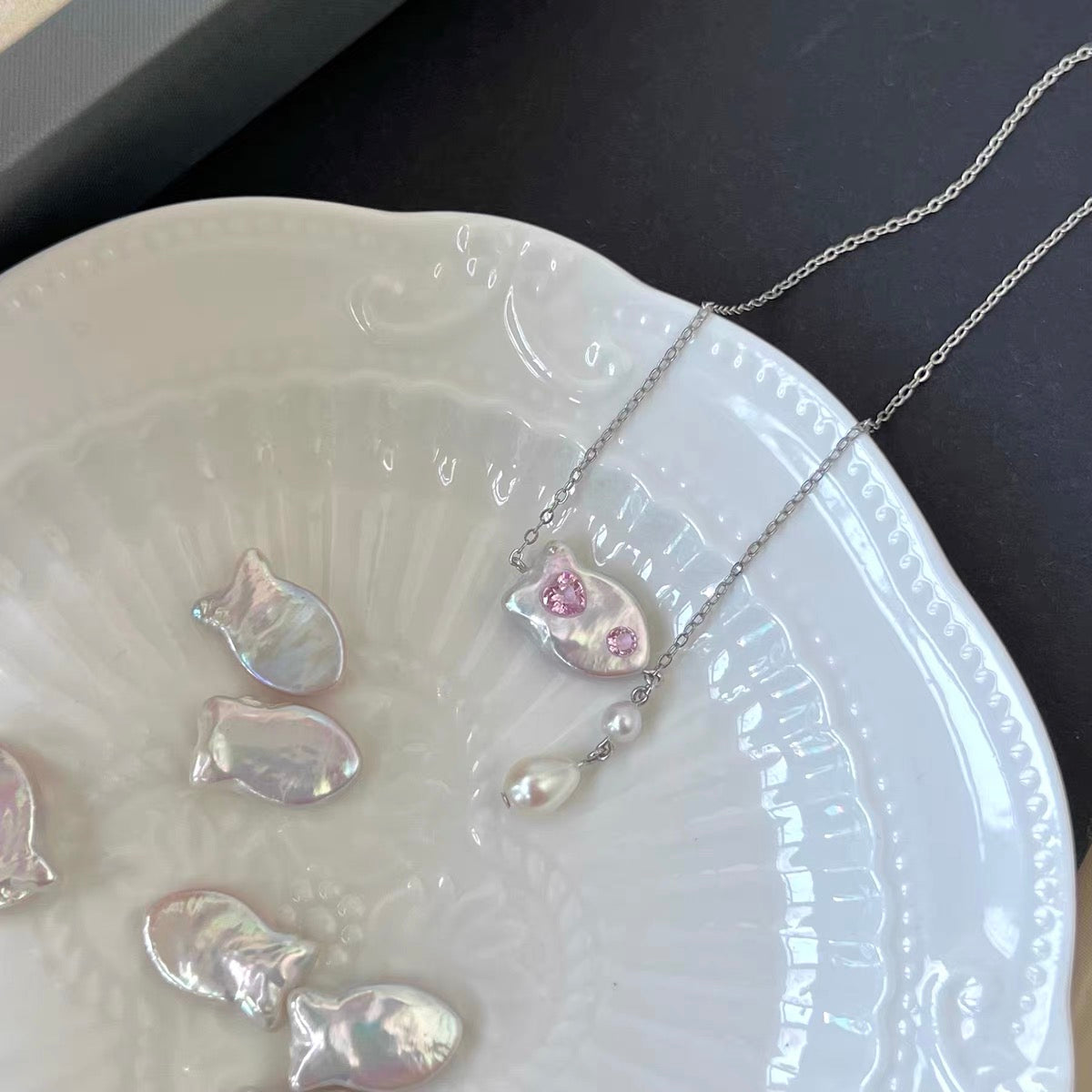 Clownfish Nemo Shape Neckalce with Baroque Pearl, Niche Design Adjustable Long Chain