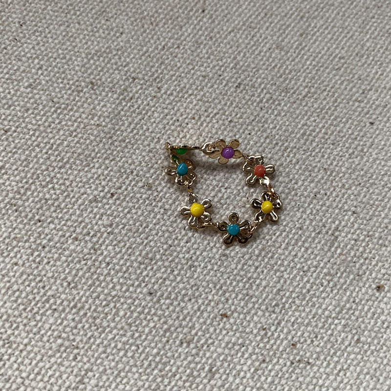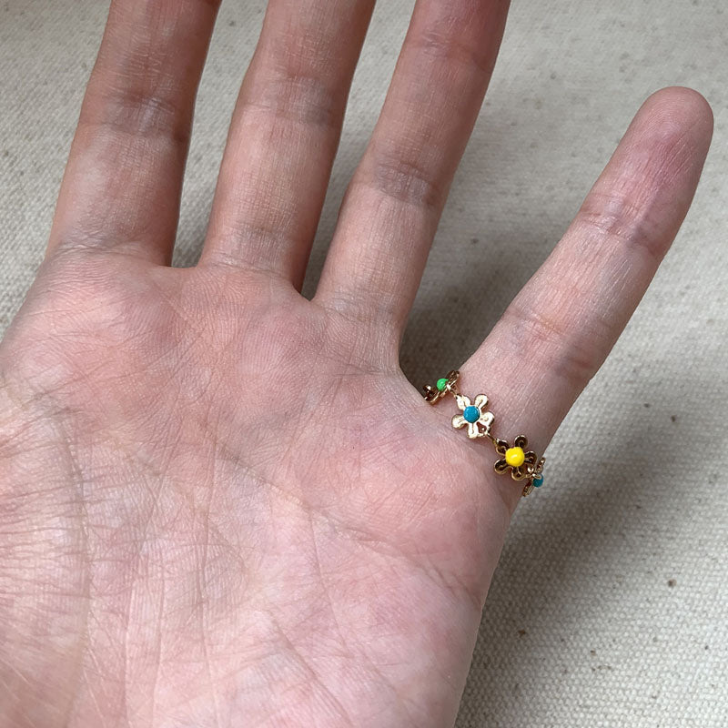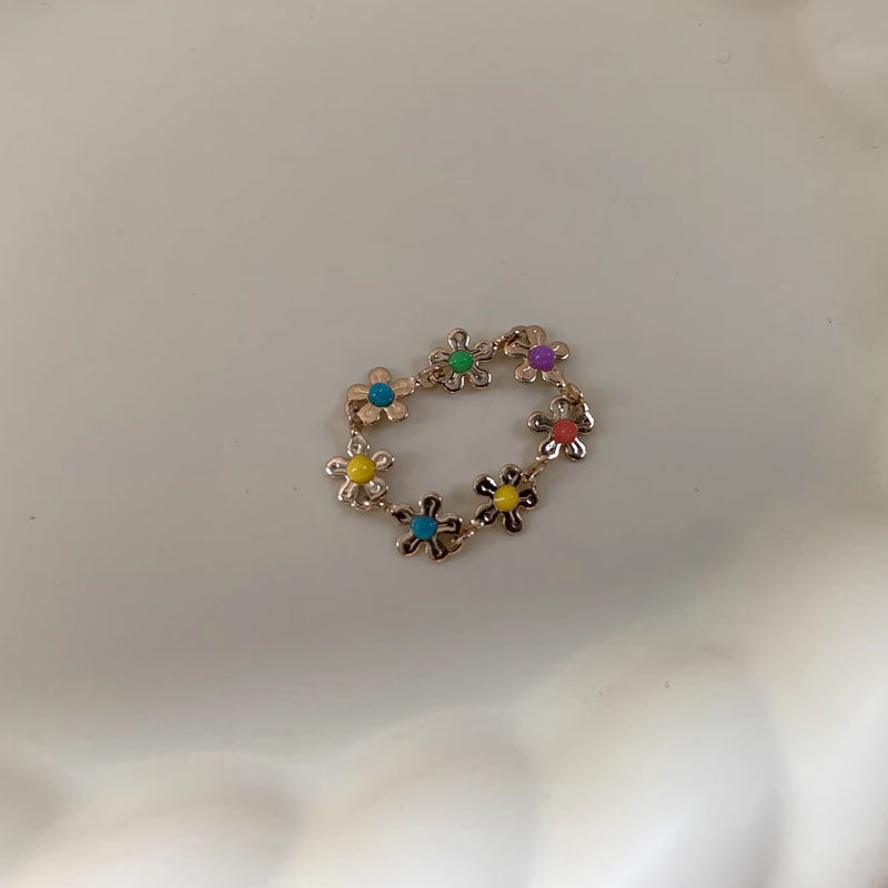 Colorful Flower Rings,Dainty Daisy Ring,Flowers Stacking Rings,Personality Flower Chain Ring for Women Valentine's/Promise Rings Gift Jewelry