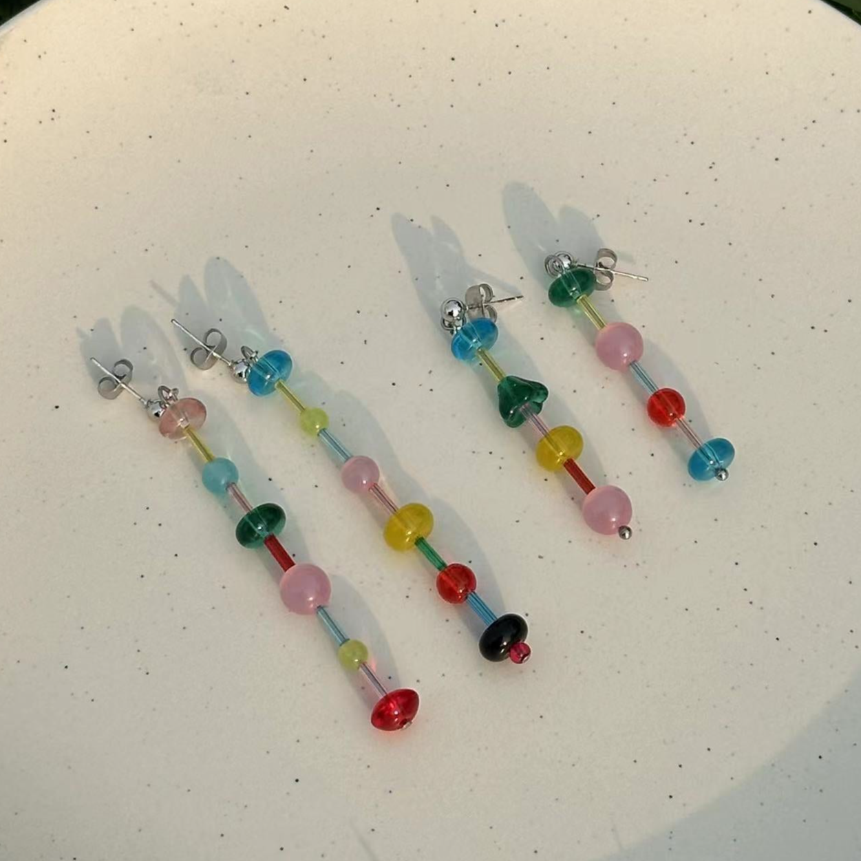 The earring studs are made of coloured glaze