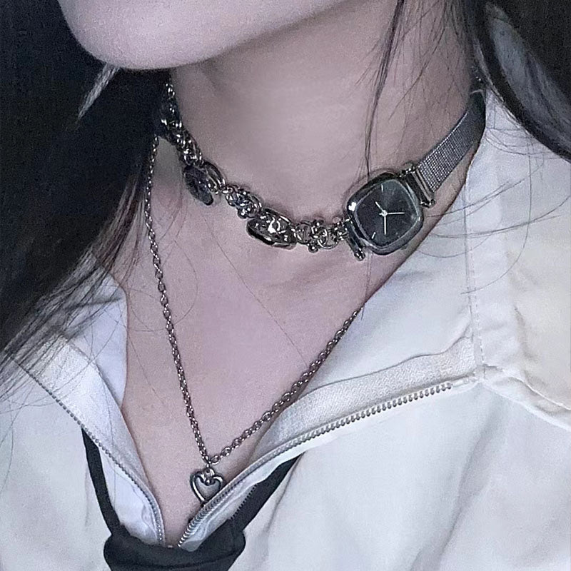 Elegant and personalized design, double-layer necklace that can be worn separately, with the watch necklace doubling as both a necklace and bracelet, stylish and cool, perfect unique gift.