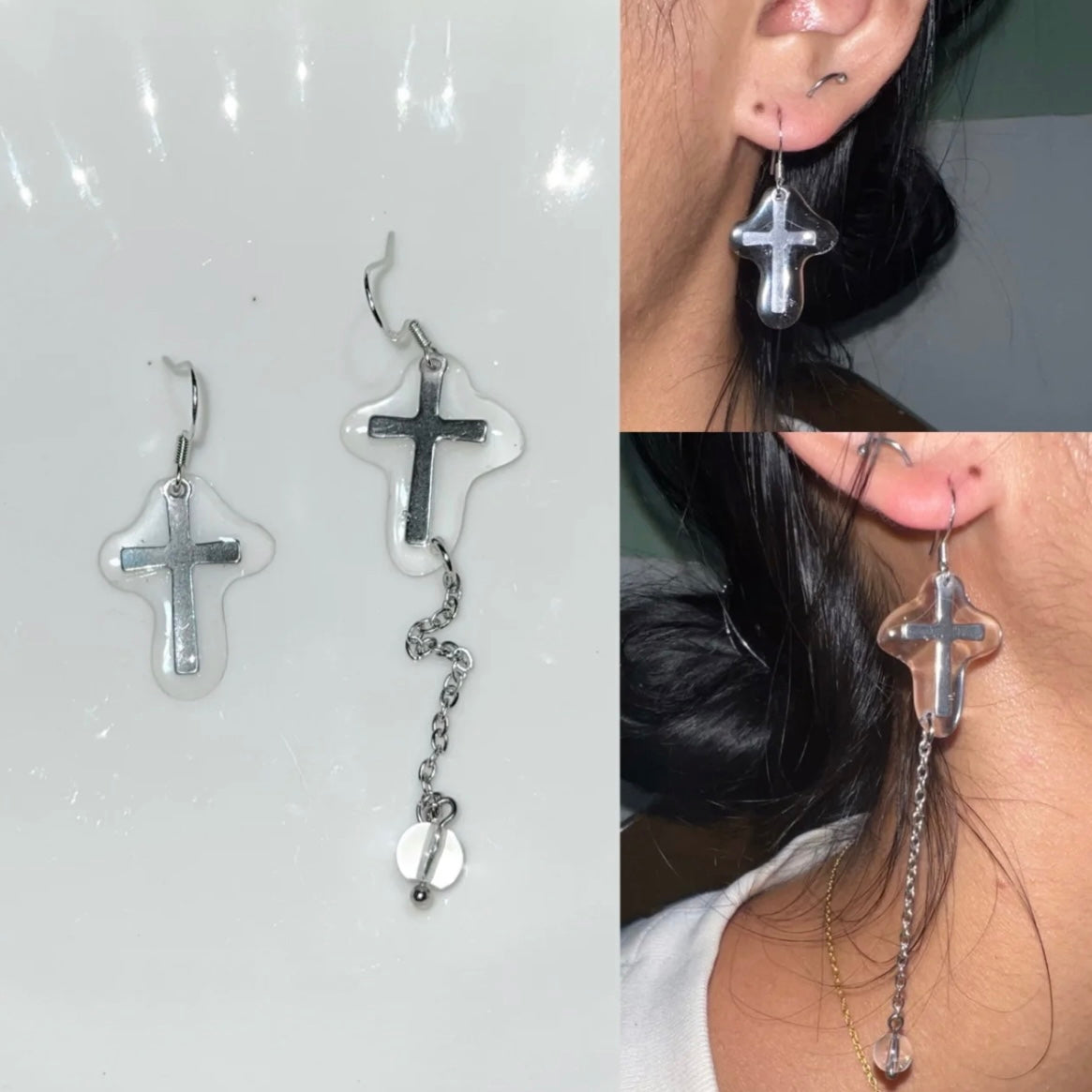 Cross Gothic Dangle Trendy Earrings Silver Chain Vinatge Jewelry for Unisex
