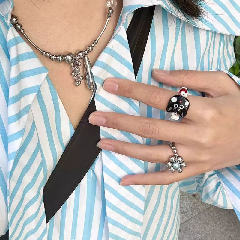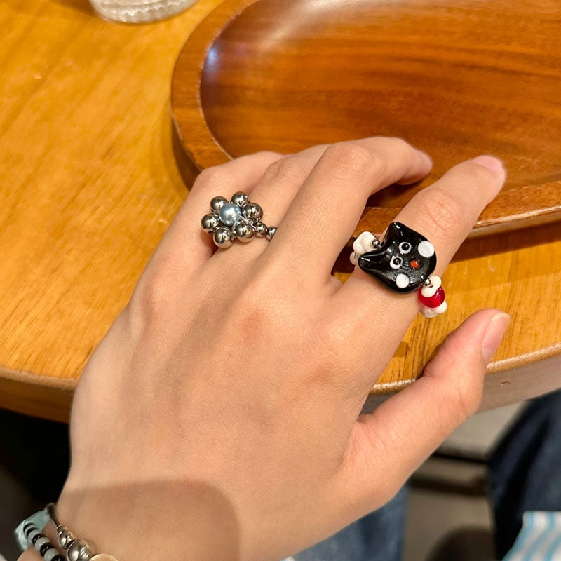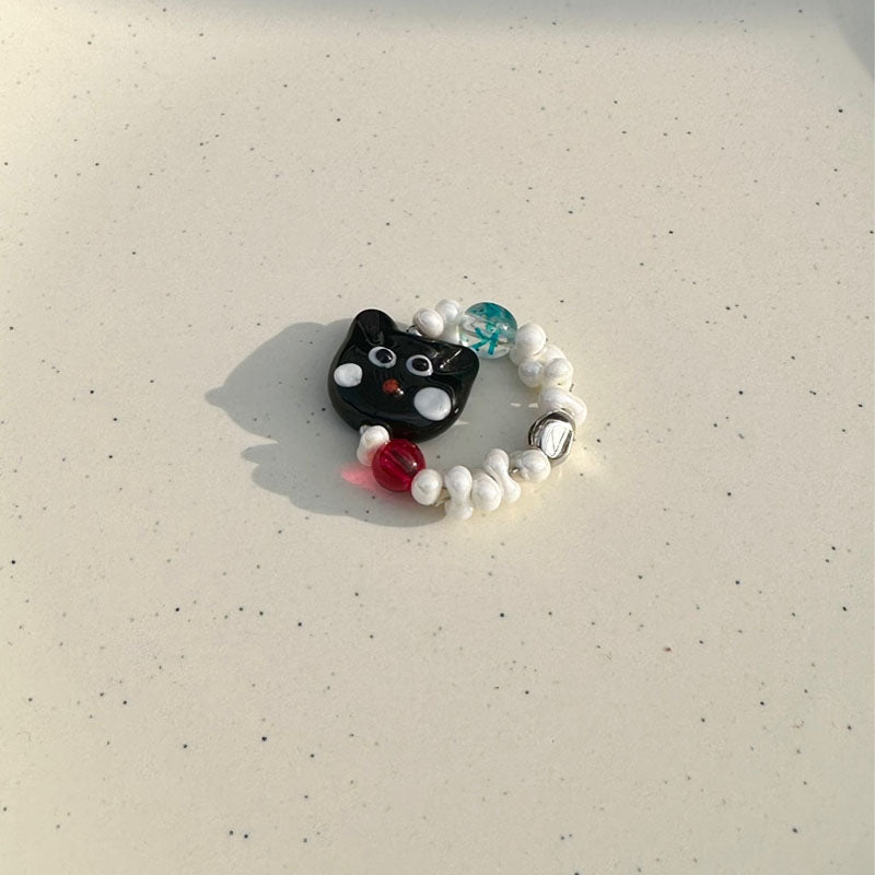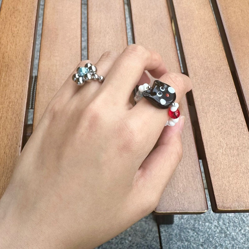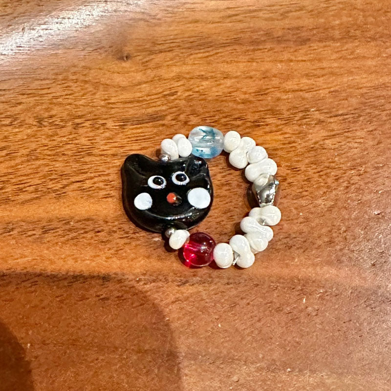 Cute Cat Beaded Ring Female Black Cat Head Index Finger Rings Fashion Jewelry