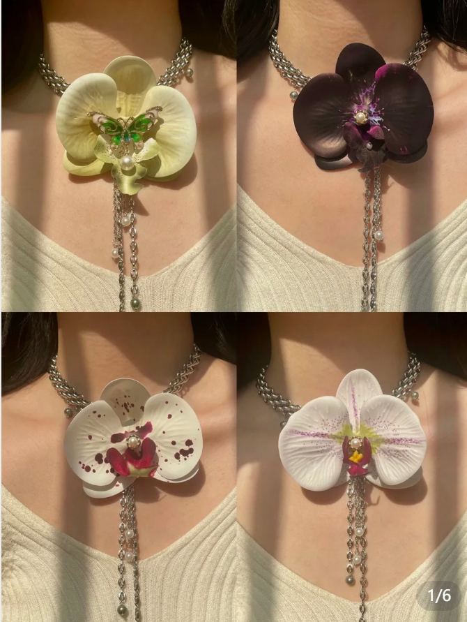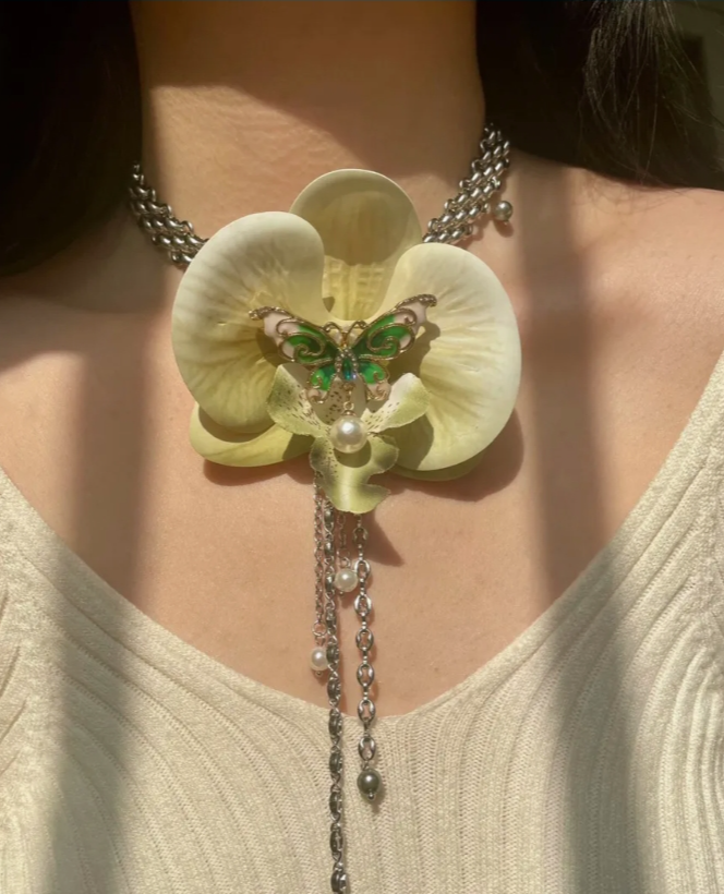 【Unique Design】Fashion choker necklace, butterfly orchid pendant necklace design, delicate beads choker.