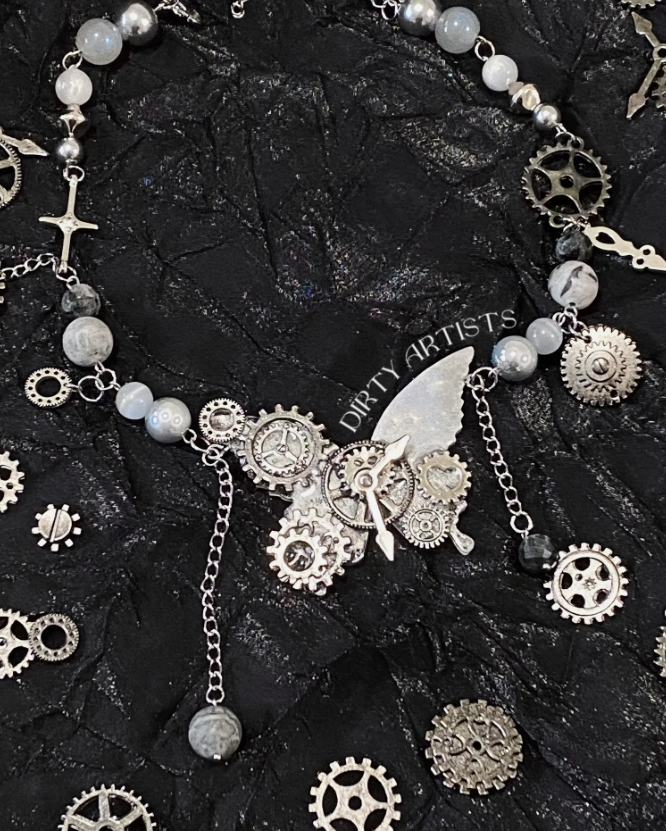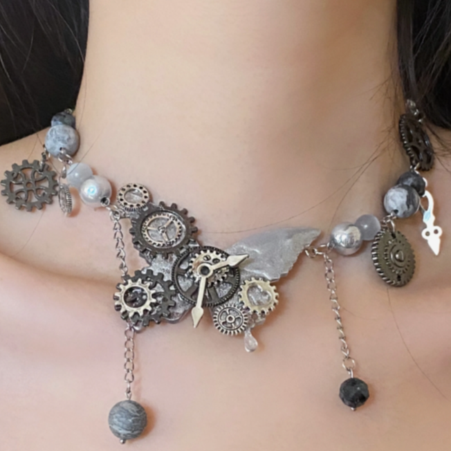 This necklace is made of watch with titanium steel chain. A unique gear and butterfly pendant with a titanium steel construction and cyberpunk design, suitable for both men and women.