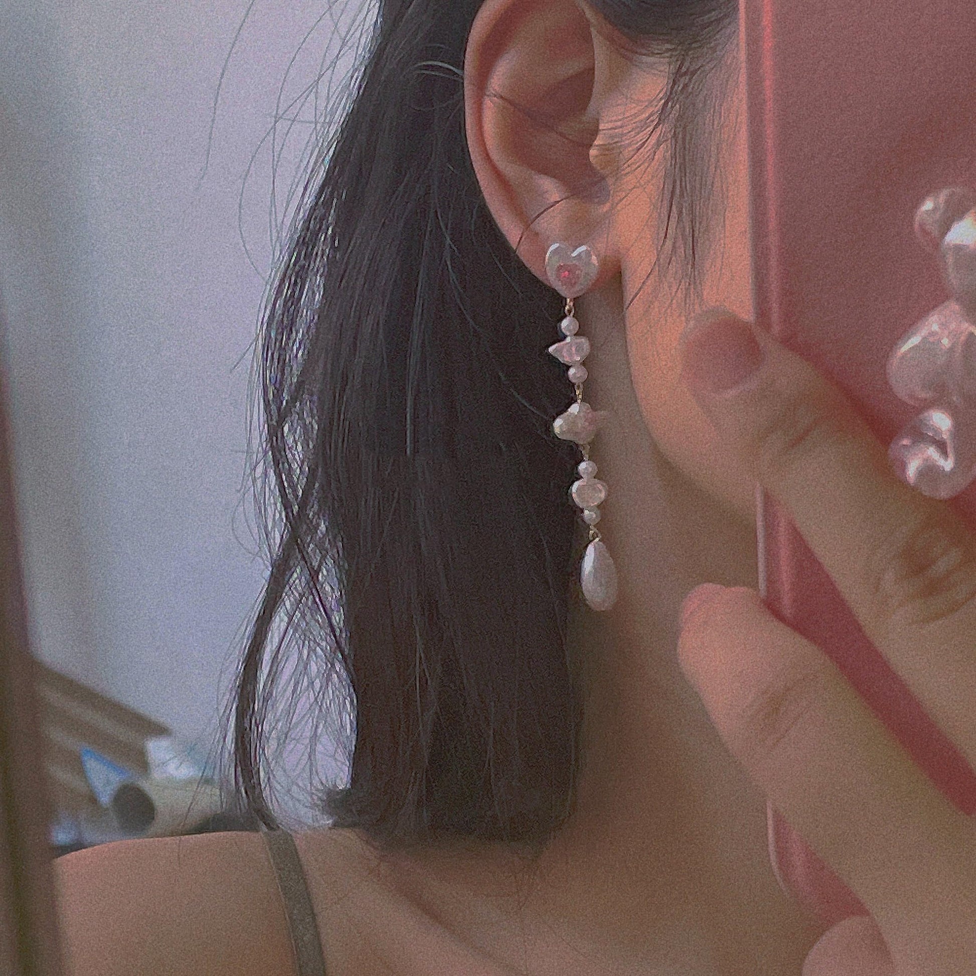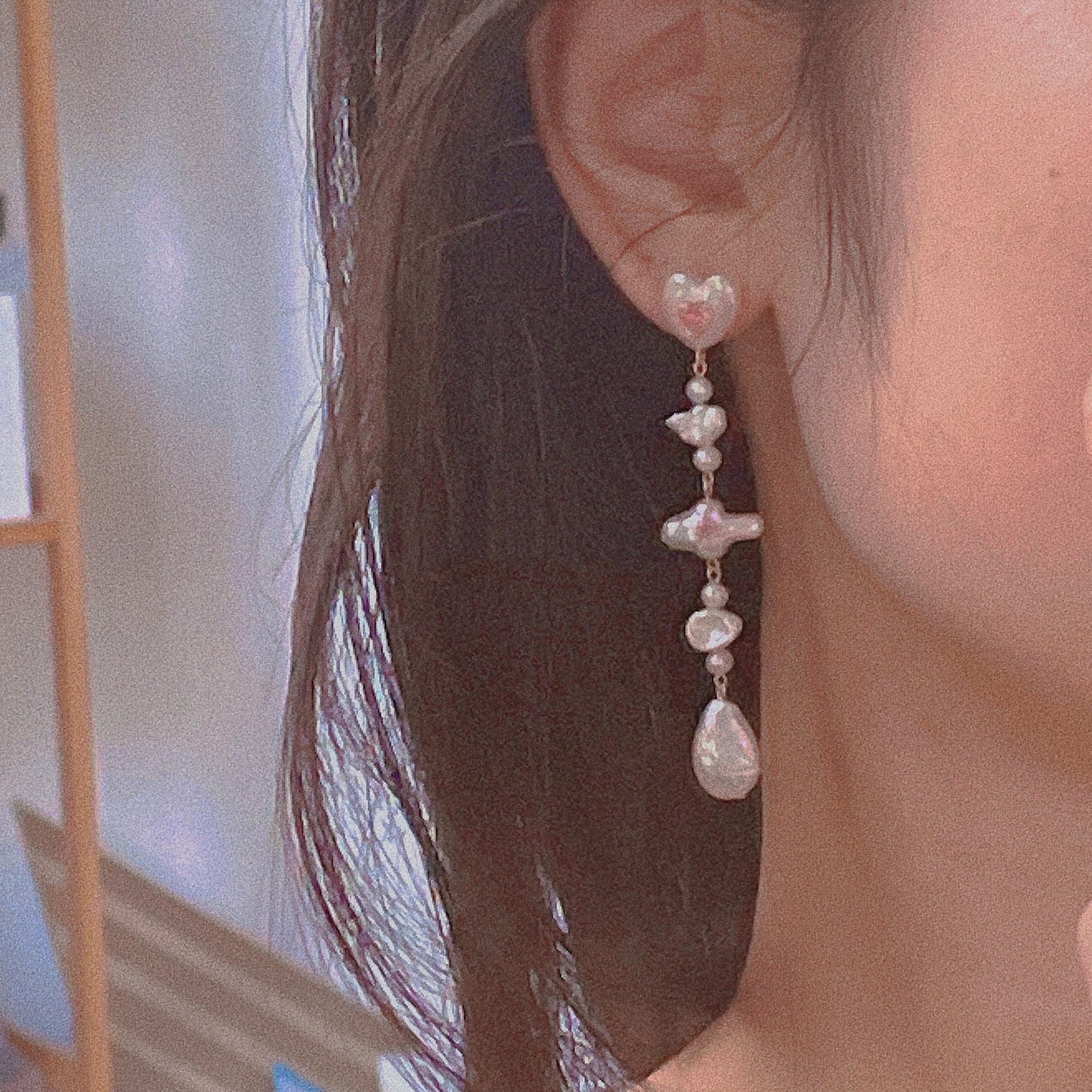 ✨Dangling Pearl Elegance: From the heart hangs a single pearl, adding a soft, elegant sway to the earrings. The pearl represents the classic beauty and sophistication, complementing the modern design of the heart.