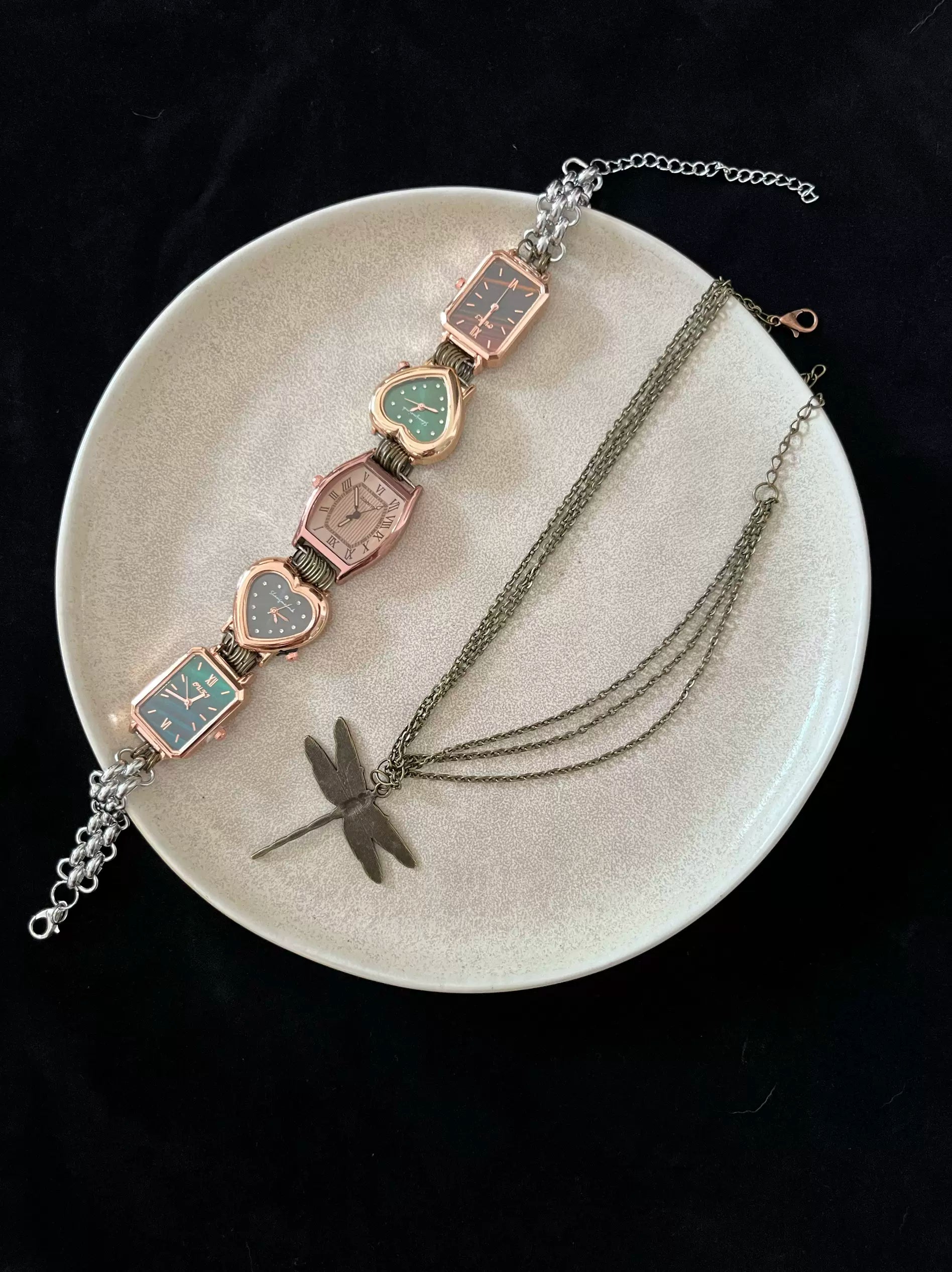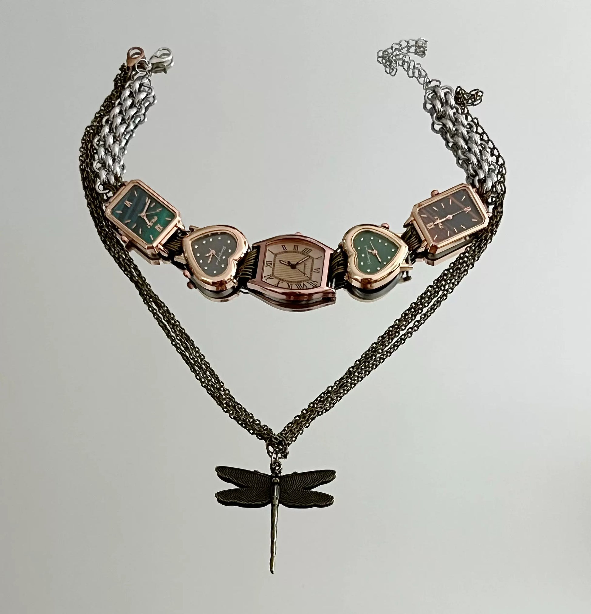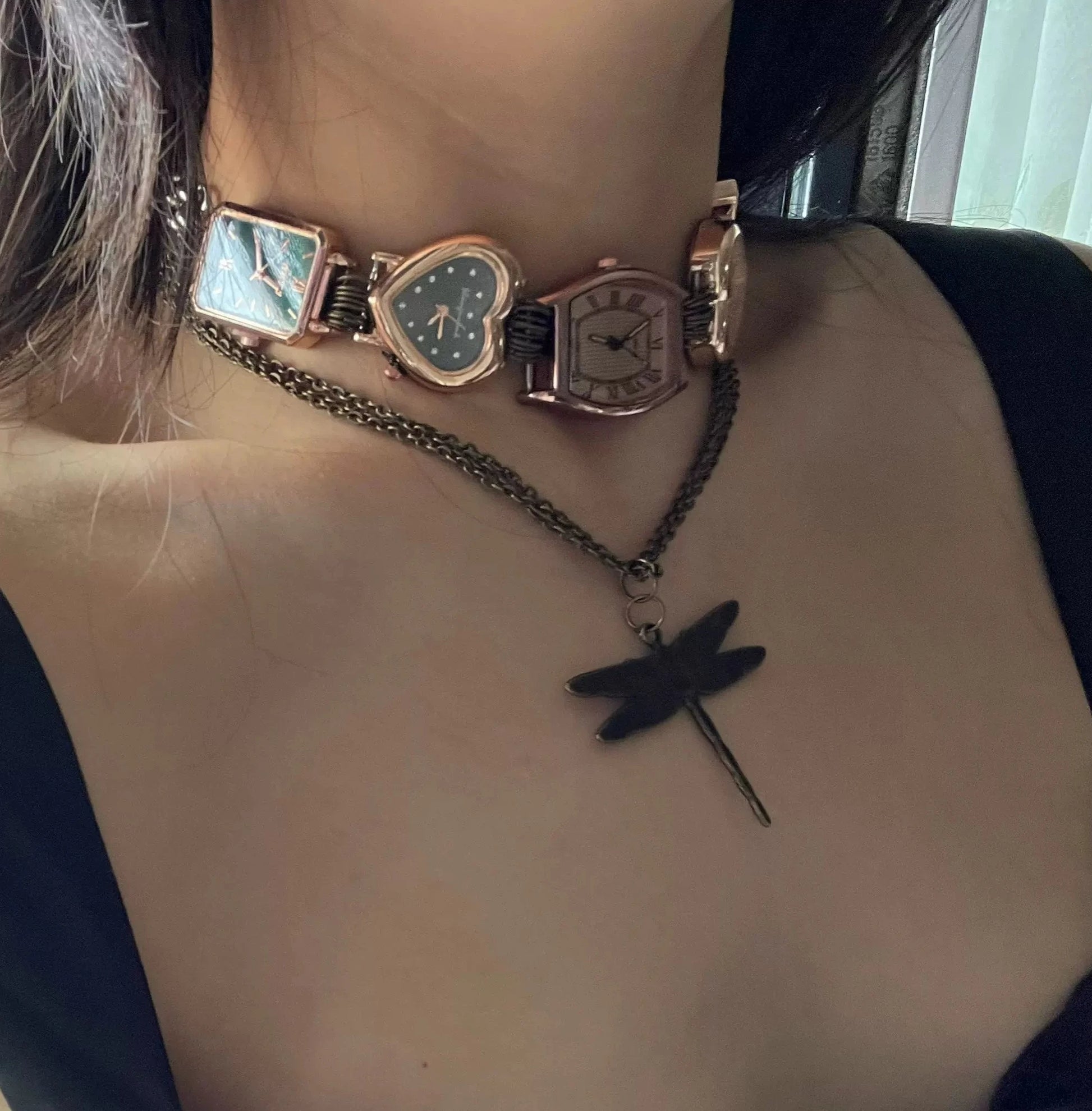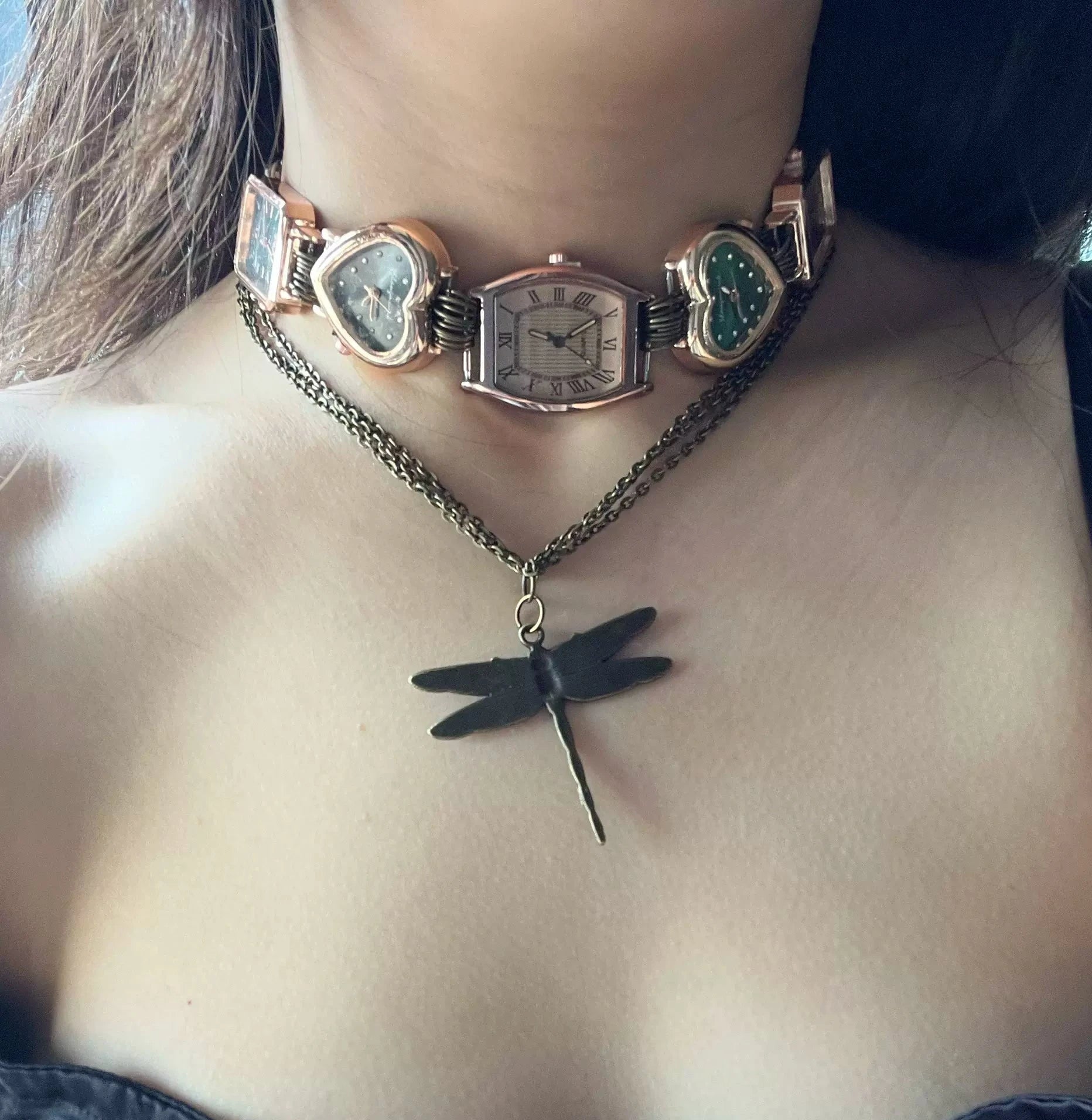 Cyber Punk Vintage Watch choker,Dragonfly Pendant Layered Necklace, Y2K accessory, Perfect Unique Gift for Man and Woman