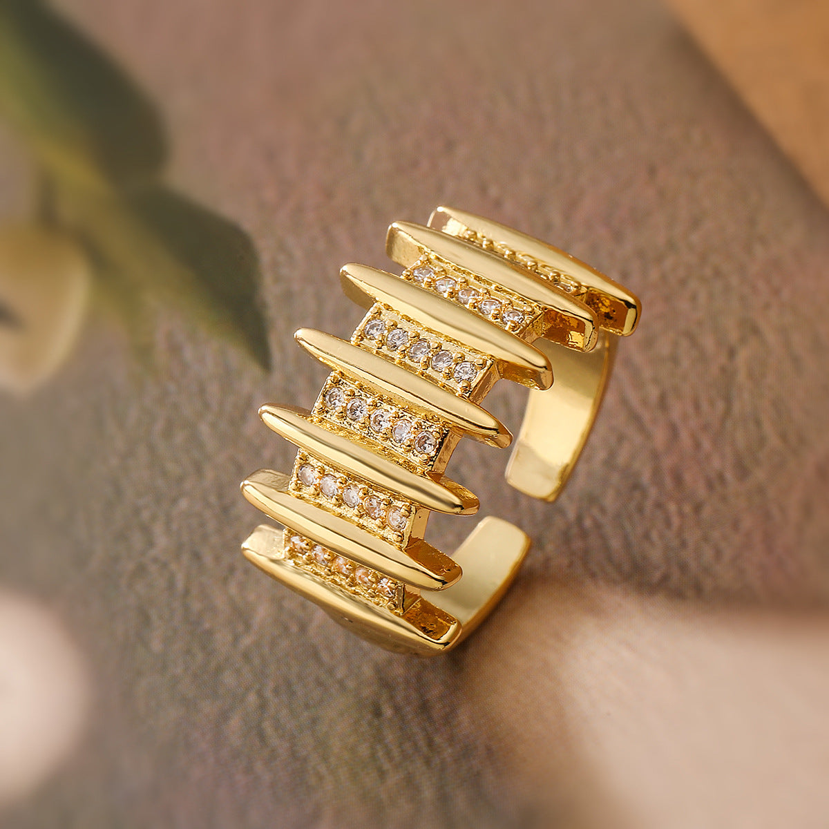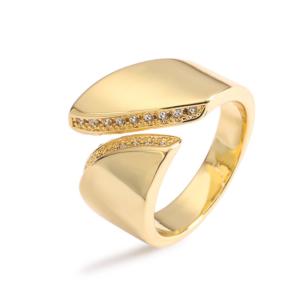 Elegant Geo 18K Gold-Plated Copper Ring with Zircon Detailing,Adjustable Statement Ring for Woman