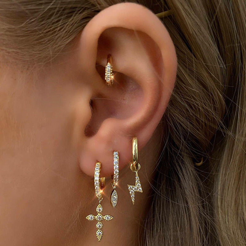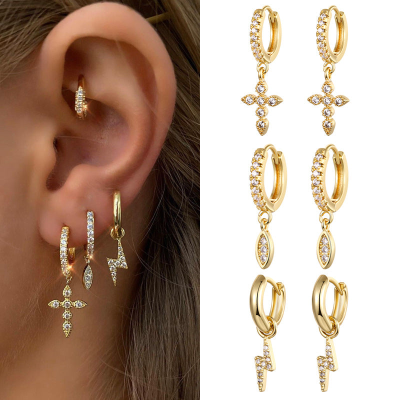 Elegant Zirconia Diamond-Like Charm Hoop Earrings