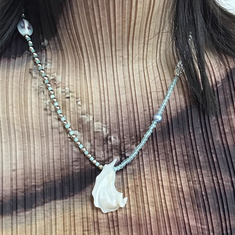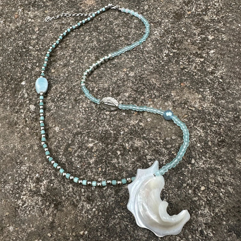 Fashion Sea Shell Pendant Necklace Beaded Choker for Women Girls