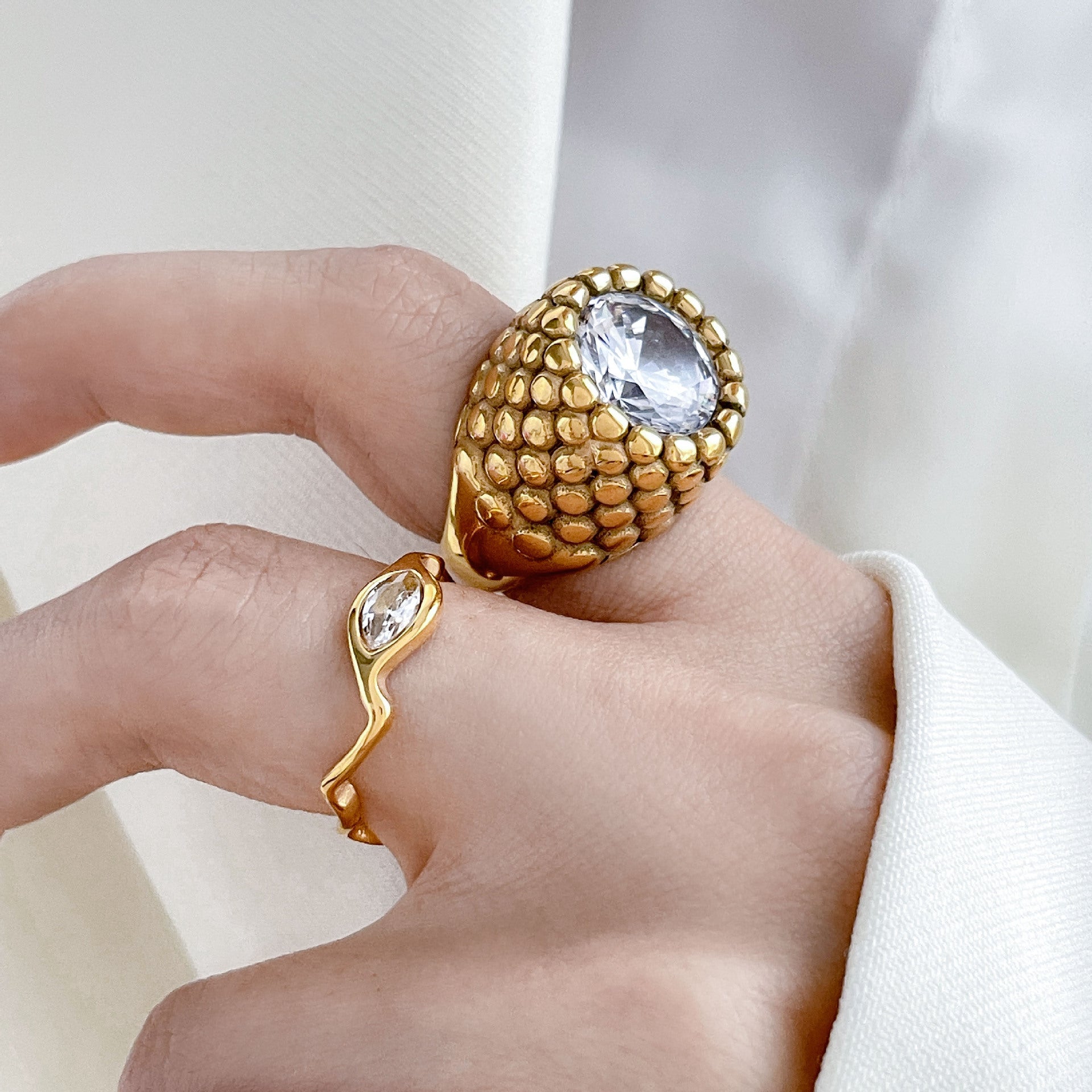 ✨18K Gold Plating: The ring is plated with 18K gold, providing a luxurious finish that is both fashionable and long-lasting.