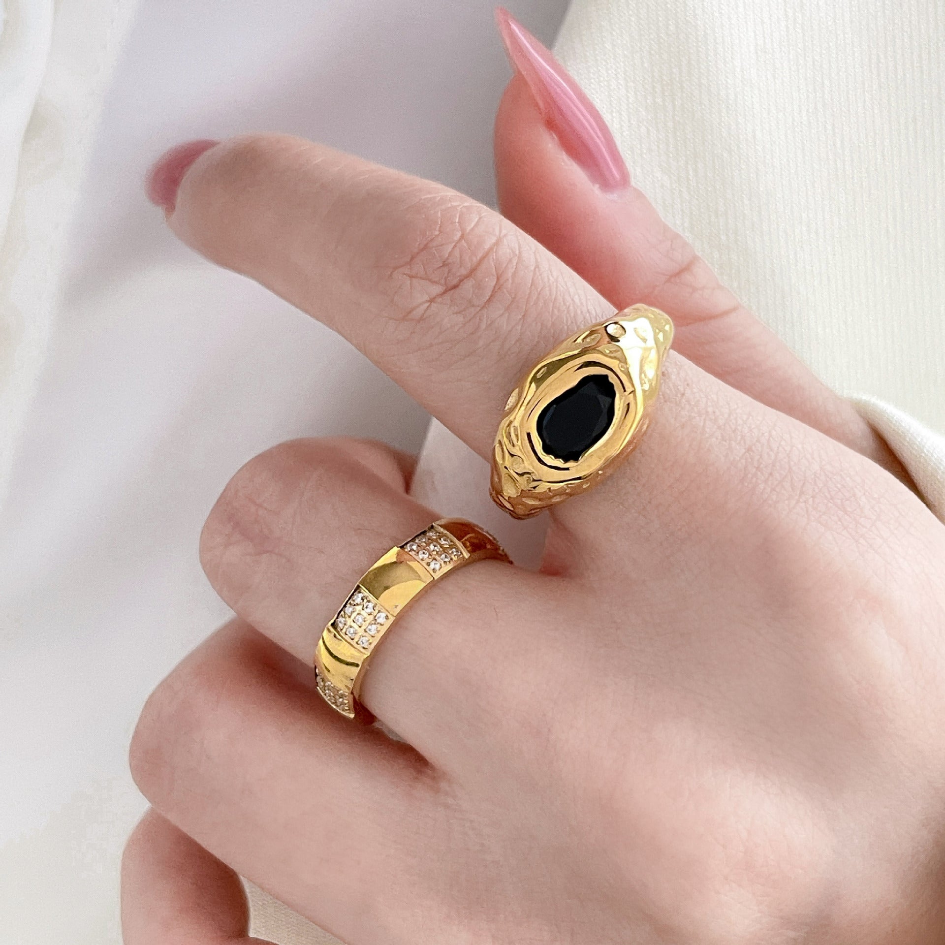 ✨Black Zircon Eye: The ring features a striking black zircon stone that serves as the 'eye,' offering a bold and captivating focal point.