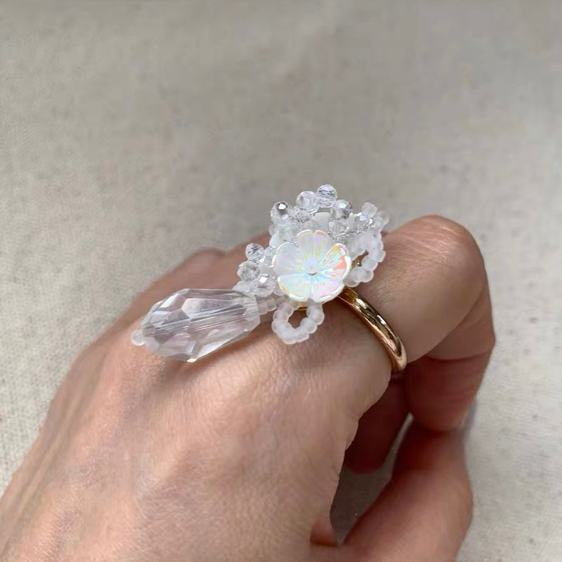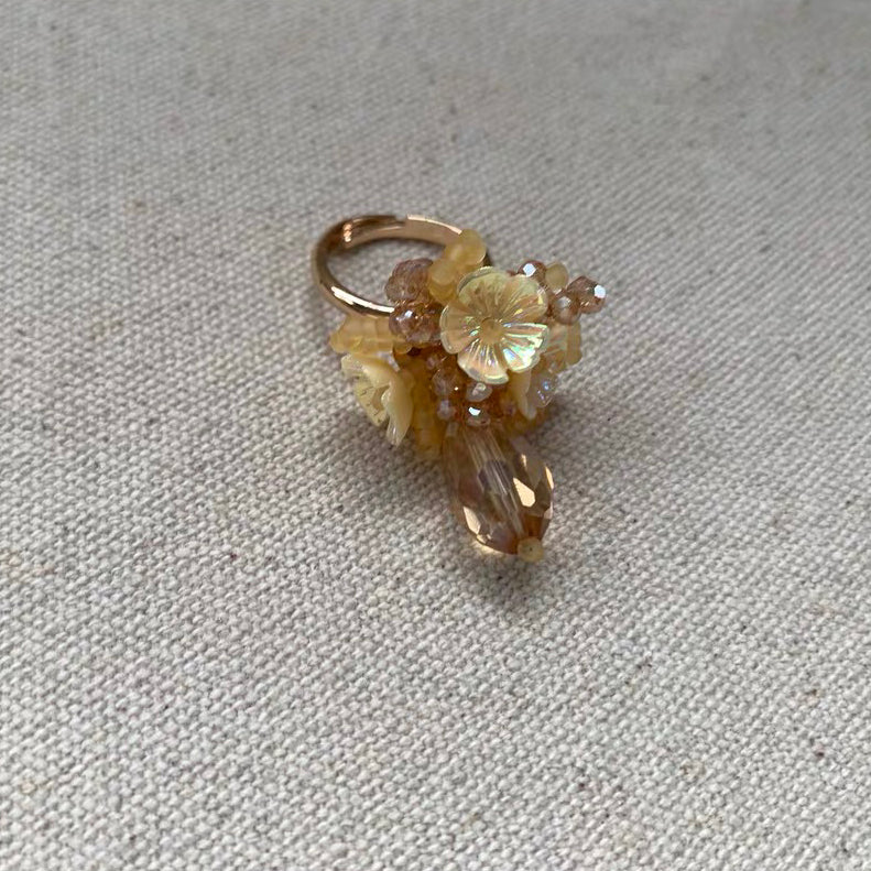 Lovely floral flower shape with bead drop shape, find inspiration from natural world, wearing this handmade and unique ring makes women with unique and noble elegant temperament.