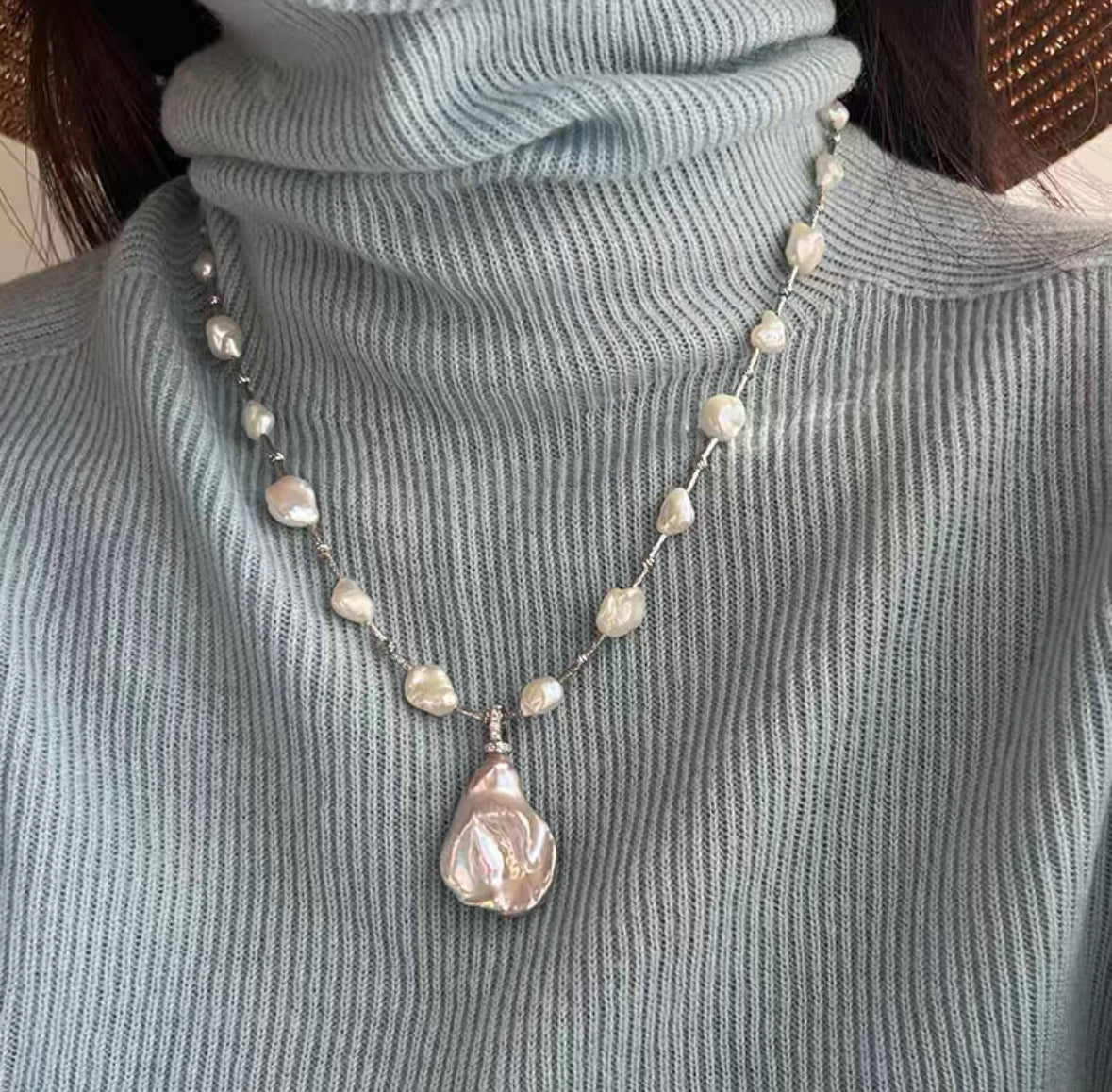Fresh Water Cultured Baroque Pearl Necklace Choker Adjustable Chain Vintage Jewelry for Women