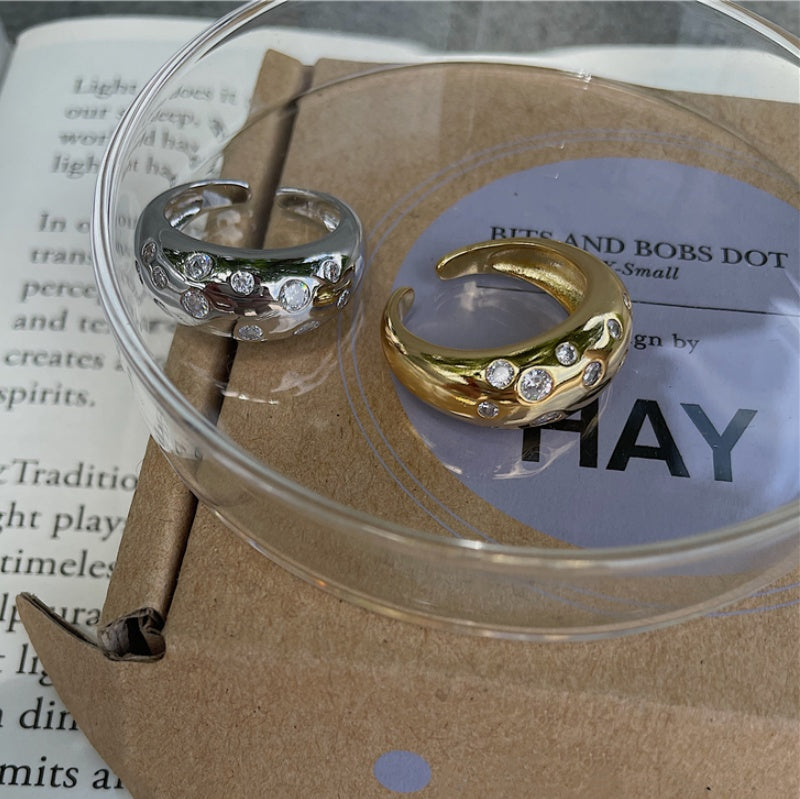 Elevate your finger fashion with our Gold-Plated Brass Open Ring, a dazzling piece set with crystal pave that adds a touch of glamour to any attire. This ring is a perfect blend of contemporary design and timeless elegance, crafted with an adjustable band to fit a variety of finger sizes.