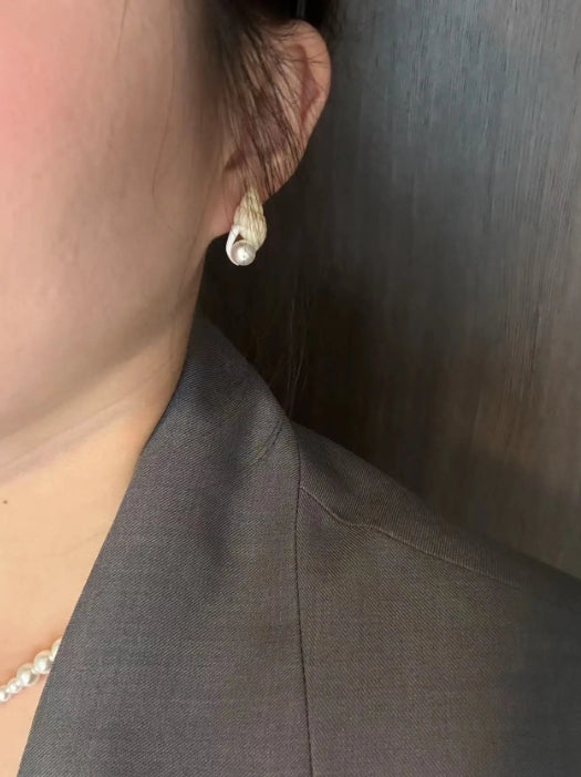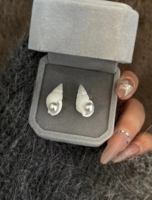 This is a pair of handcrafted white conch shell earrings, complemented by pearl studs, made from natural conch shells with a simple and elegant design, making them a perfect and unique gift.