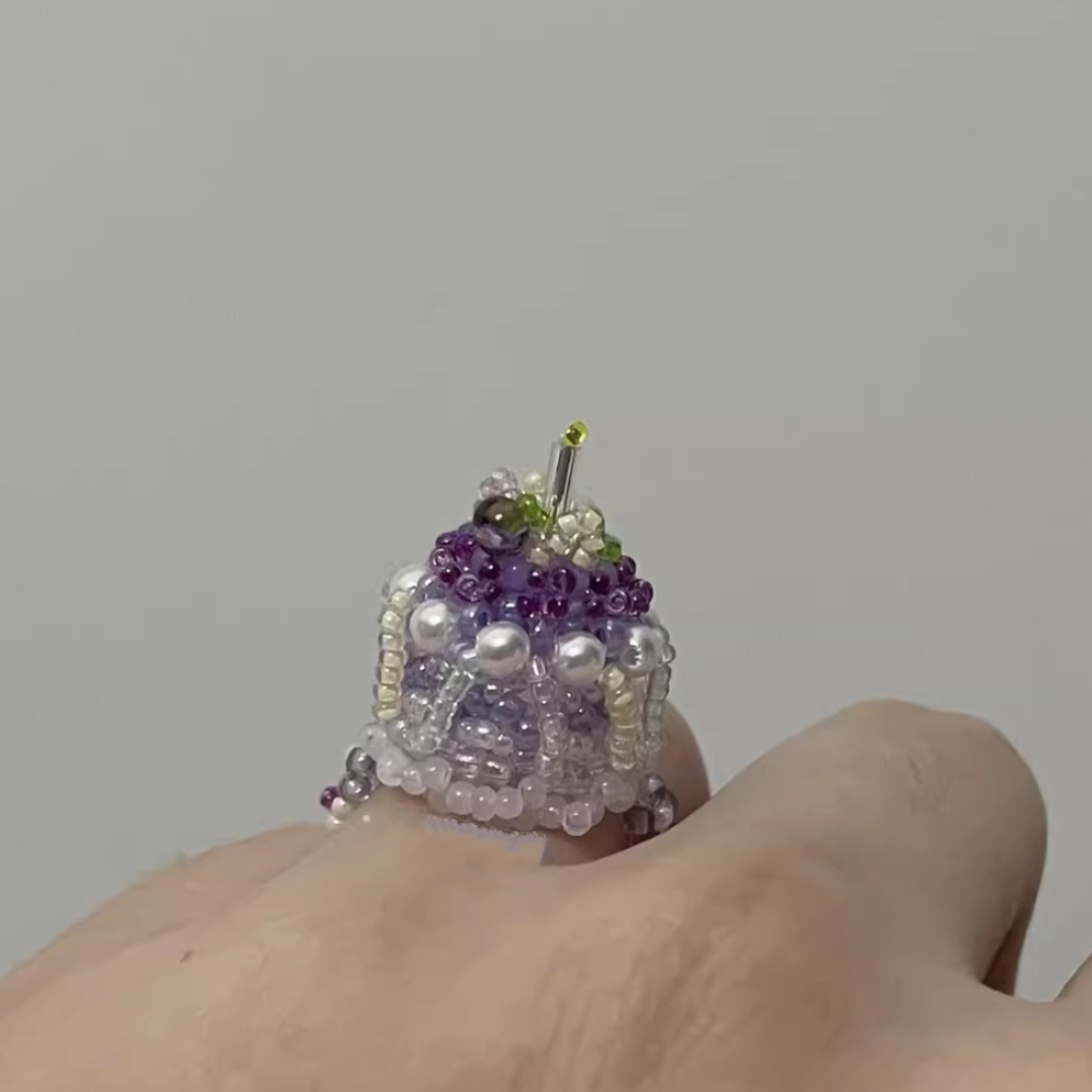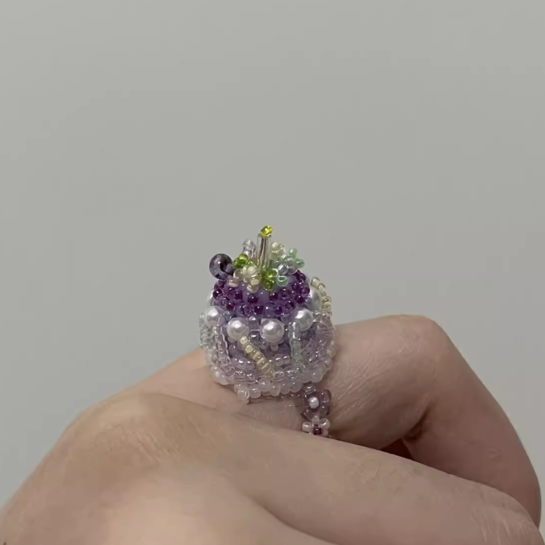 Handmade Beaded Jewelry Pig Jade Goose Grape Jelly Cake Ring and Pendant