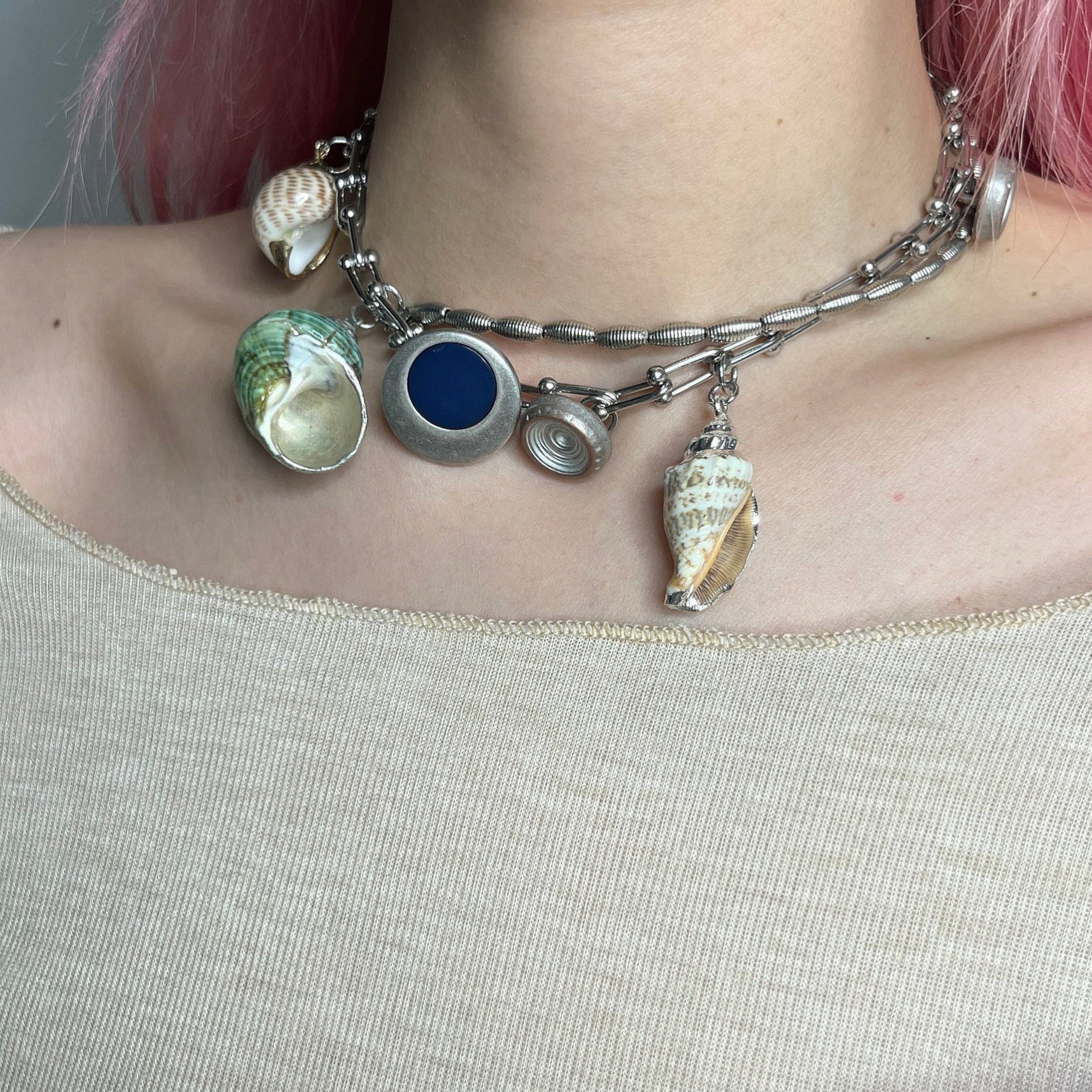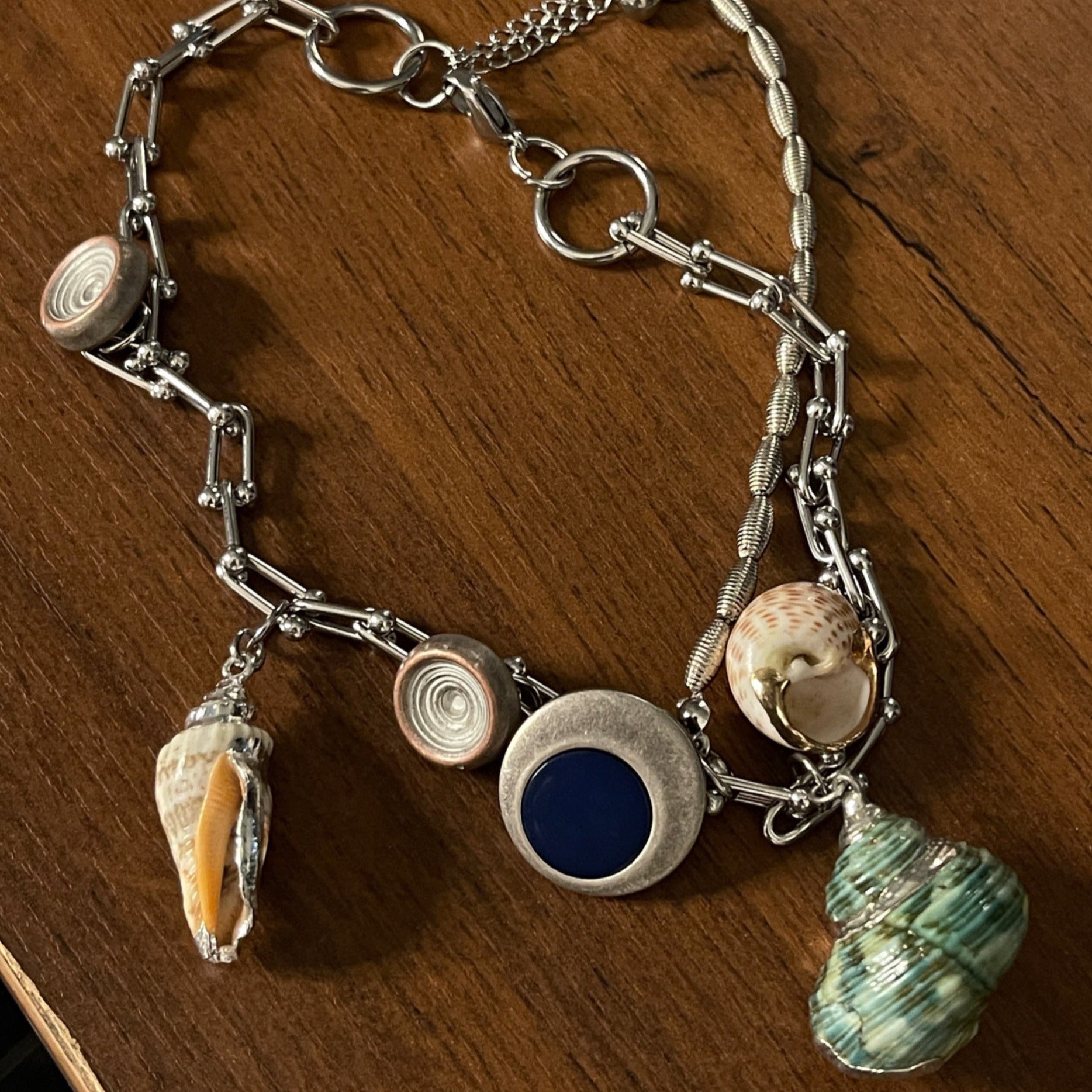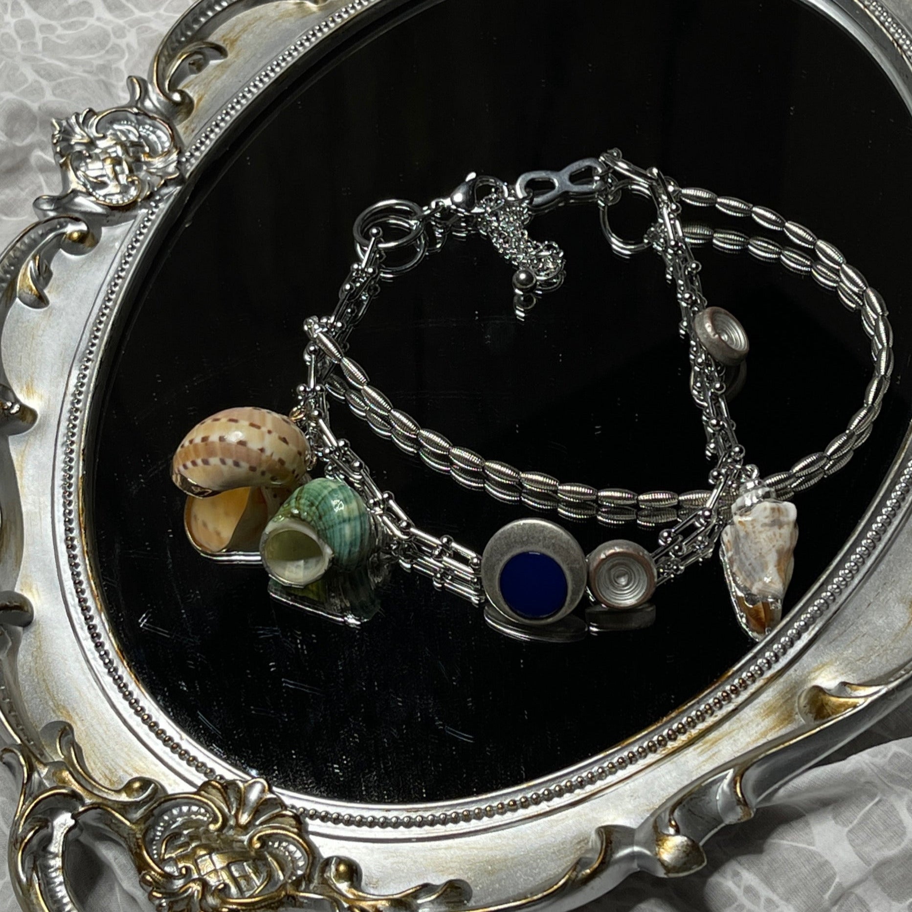 The necklace is made of alloy, ensuring durability and resistance to wear and tear. The conch shells used are small and rare, adding a touch of uniqueness to the design.