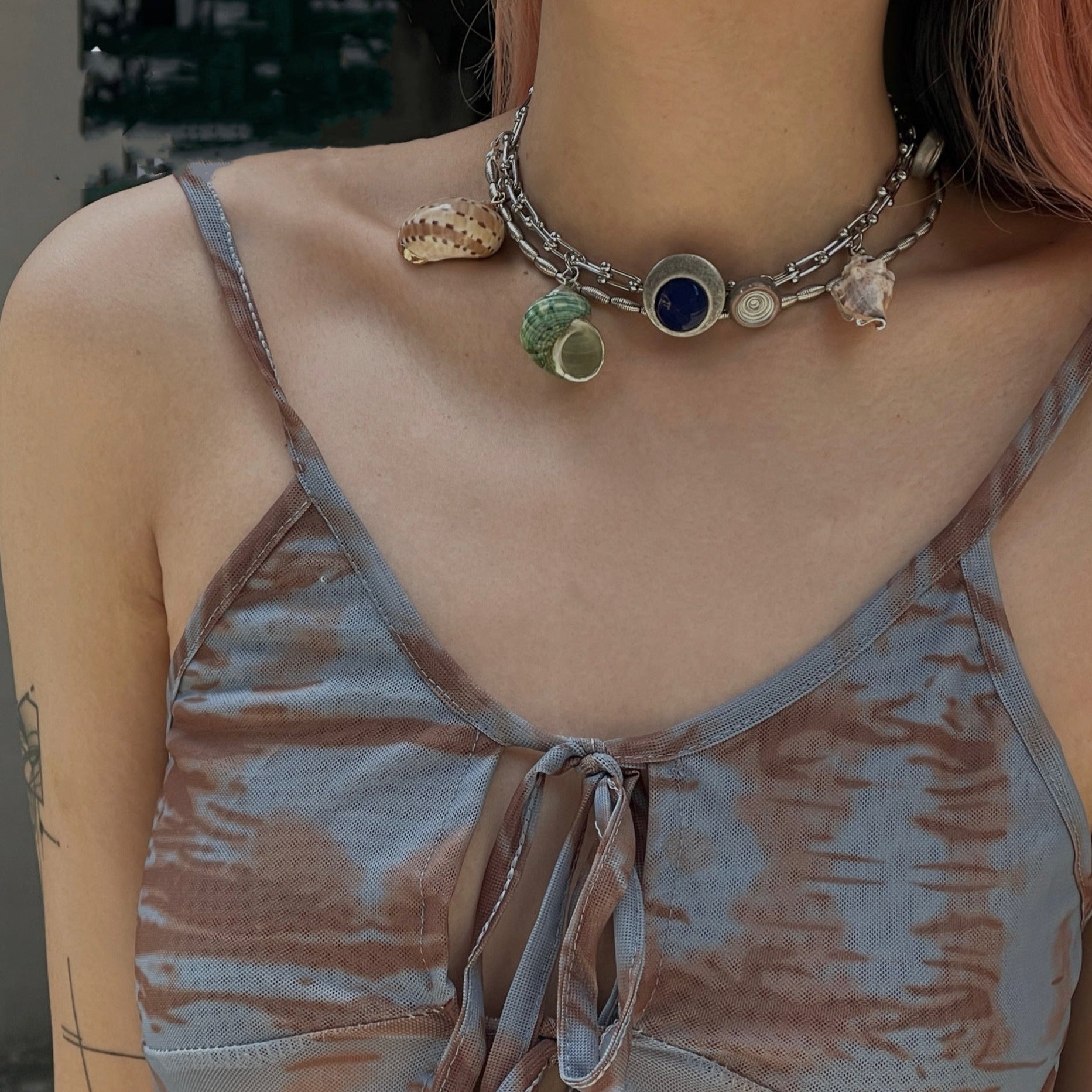 Handmade niches natural conch spliced vintage choker chain