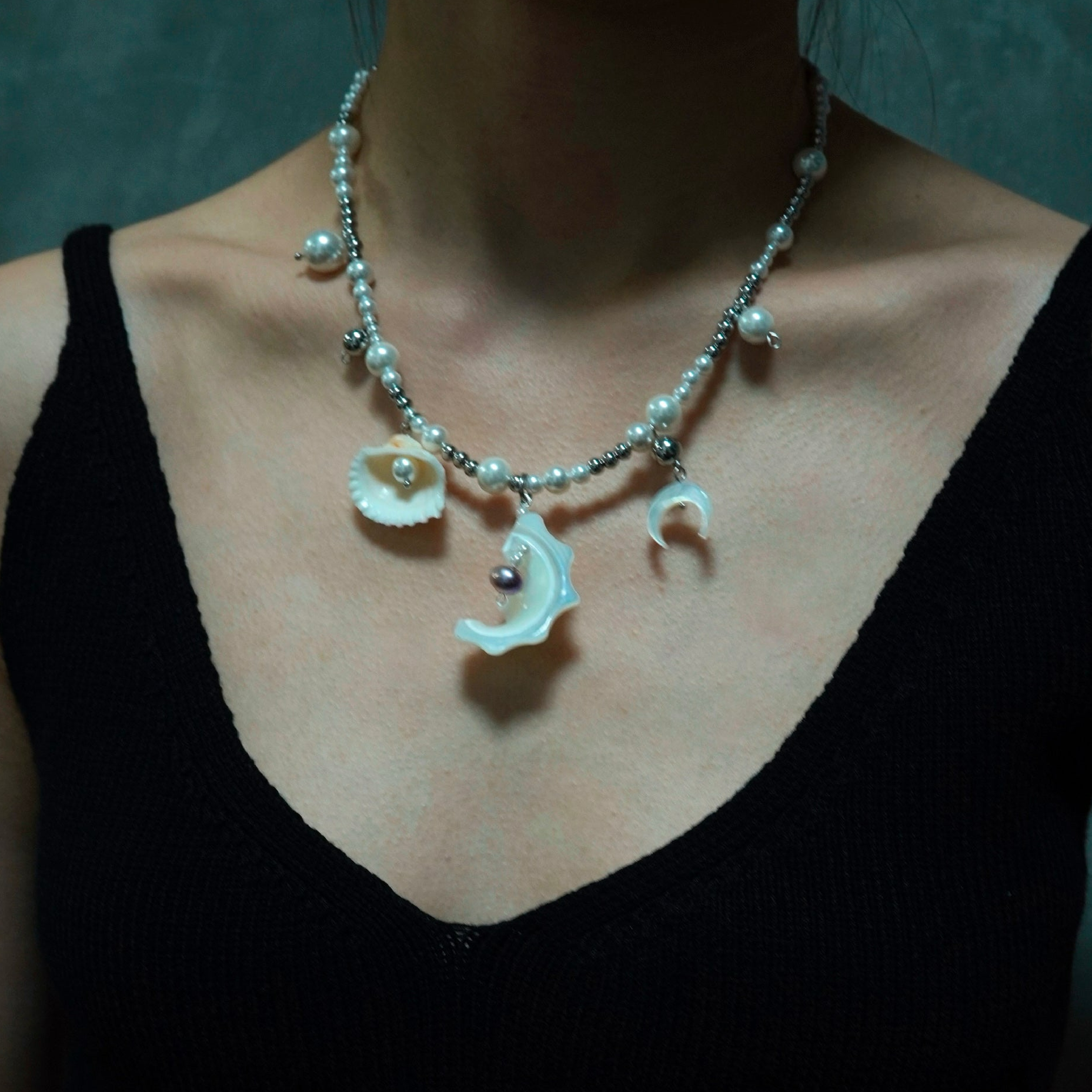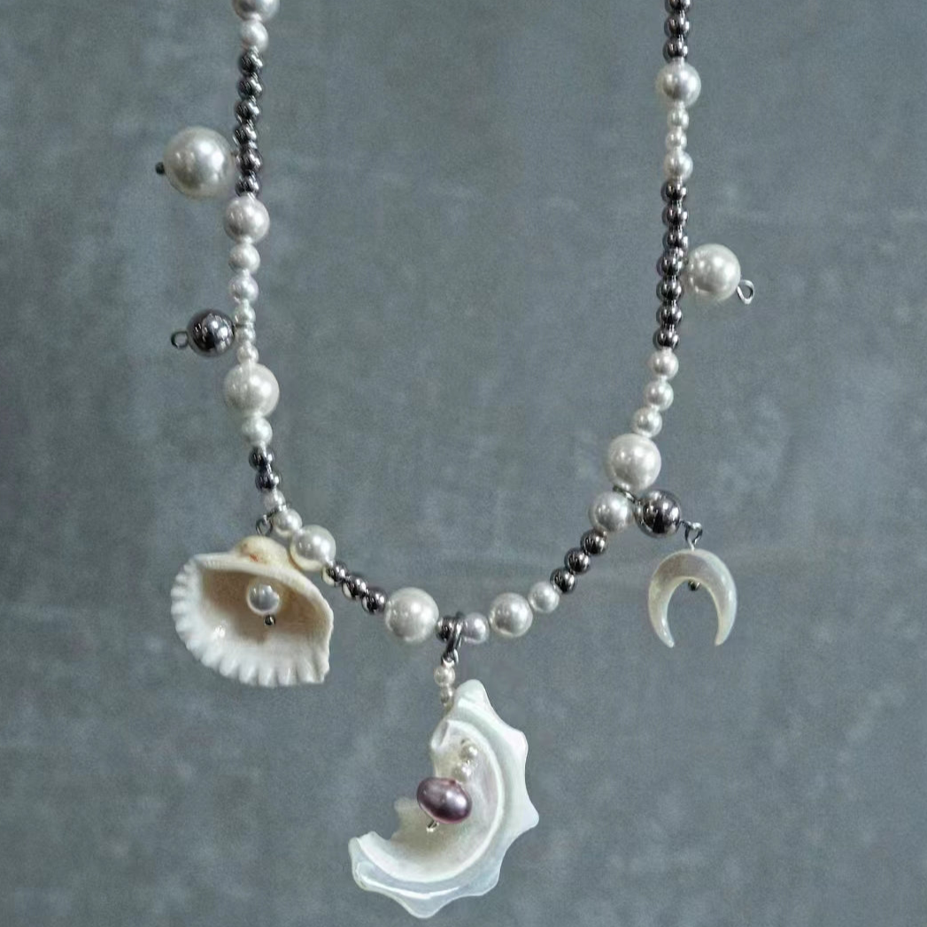 【Unique design】Combined with horseshoe snails, white butterfly shells/white shells/pearls/shell beads/titanium steel, it has a sense of layering.