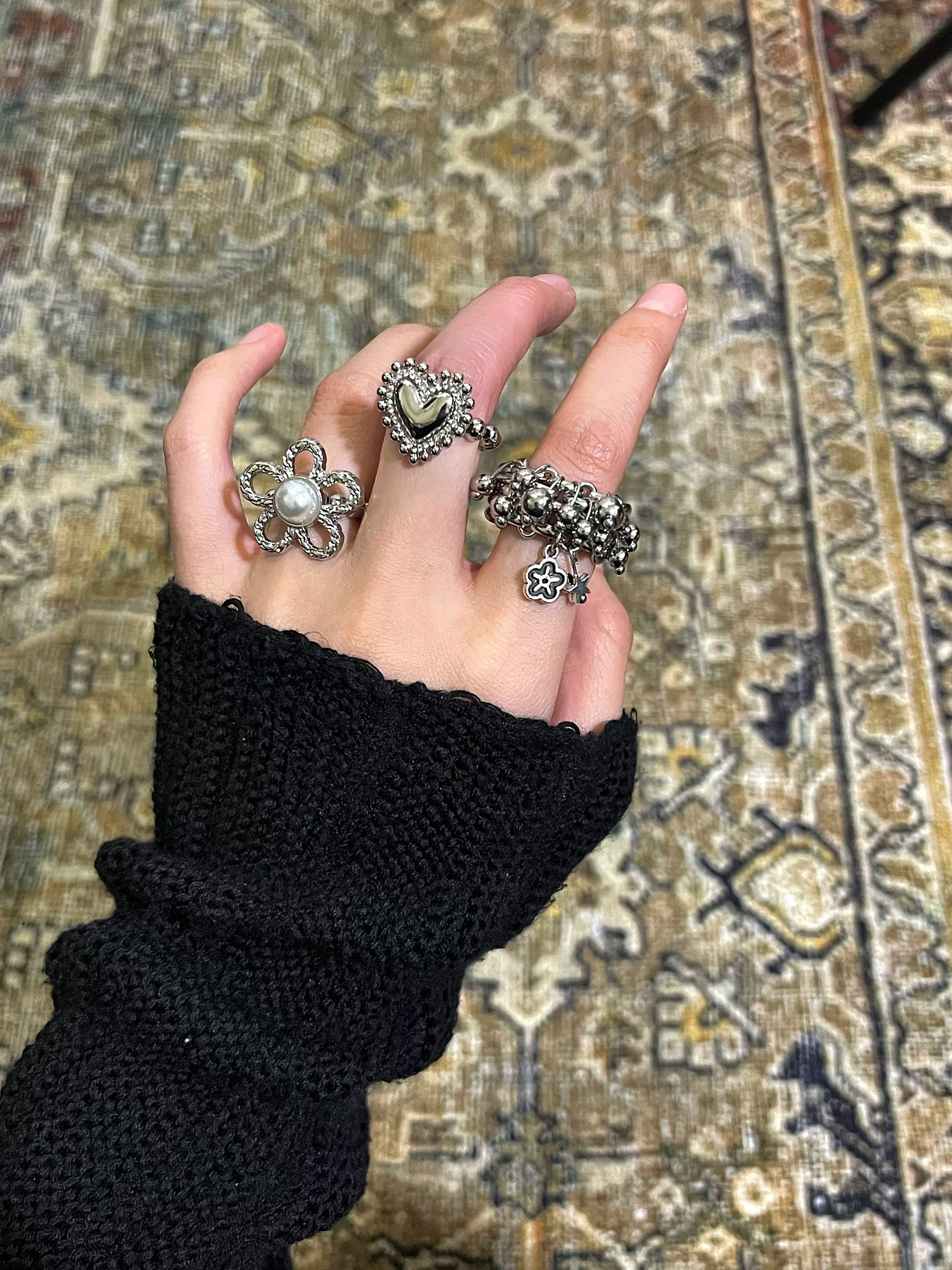 Handmade Rococo Freshwater Pearl Flower/Love/ Beaded Ring, Delicate Retro Silver Ring All Matched