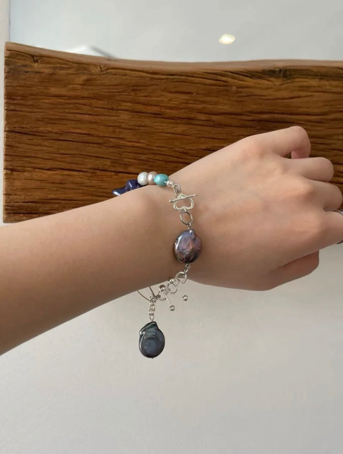 Each pearl boasts a unique primordial growth texture, handpicked to ensure exceptional quality.  Set with other cute pendants add a touch of uniqueness on this bracelet.(Due to variations in pearl shape and color batches, each piece may differ slightly from the picture, but we strive for close resemblance.)