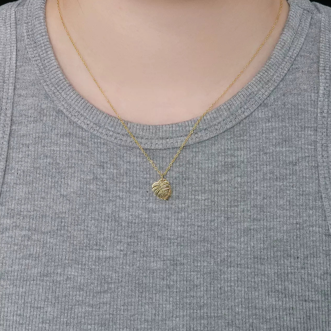 This captivating clavicle chain draws inspiration from the lush beauty of the tropics. A minimalist palm leaf charm hangs delicately from a fade-resistant stainless steel chain, adding a touch of nature-inspired elegance to your look.