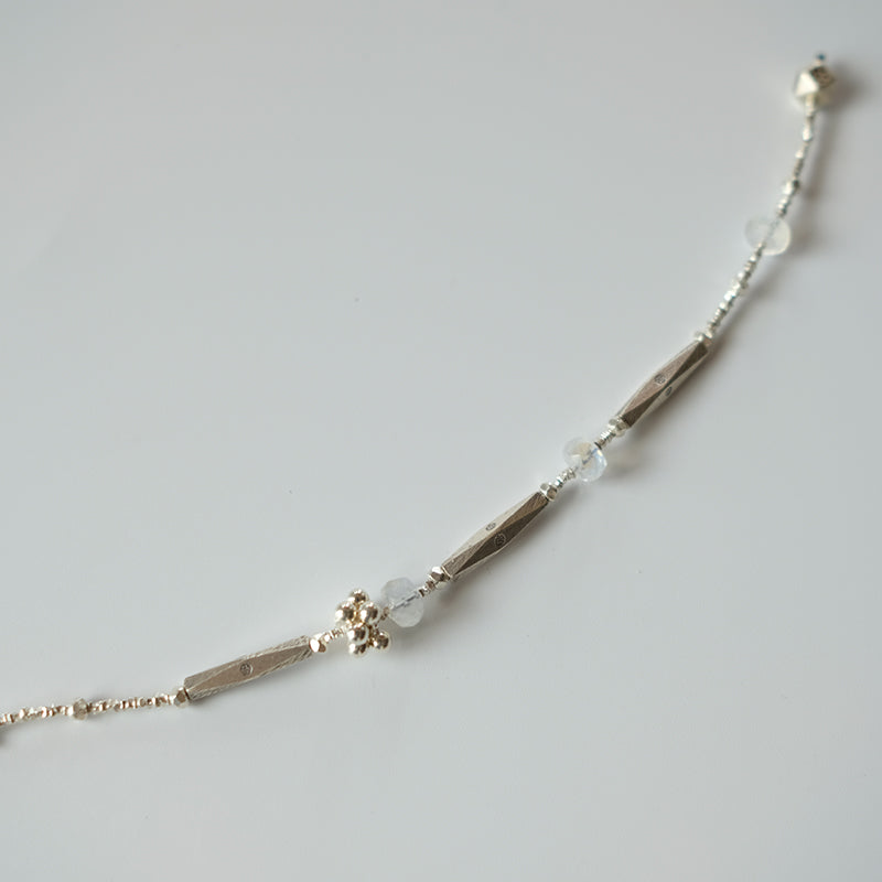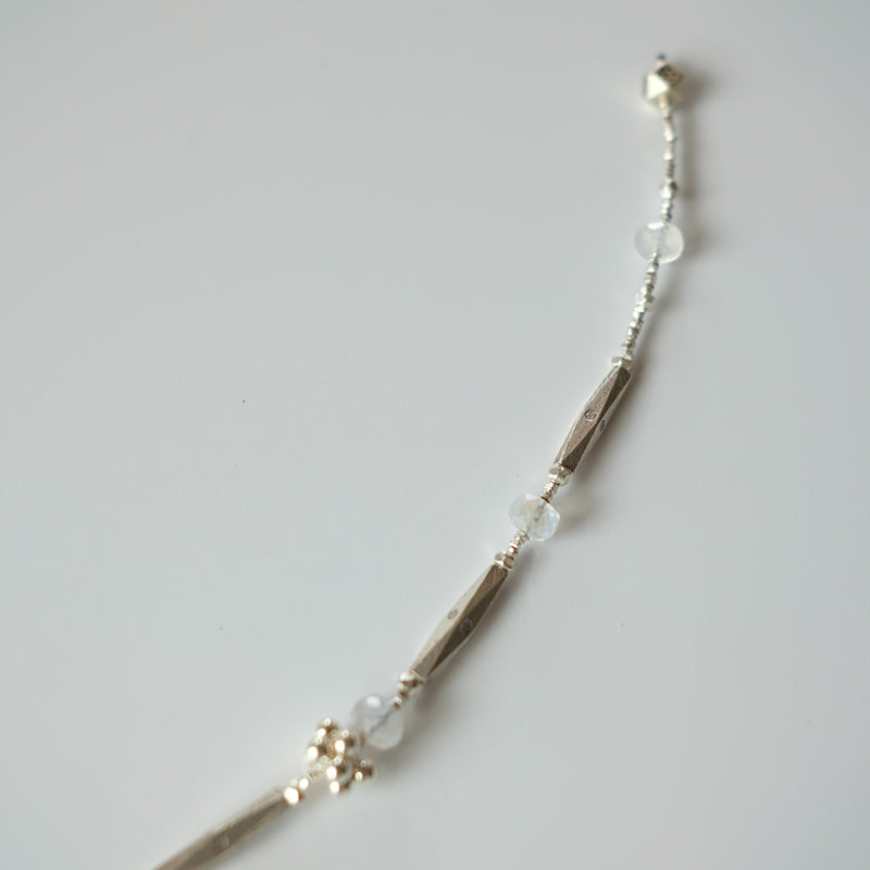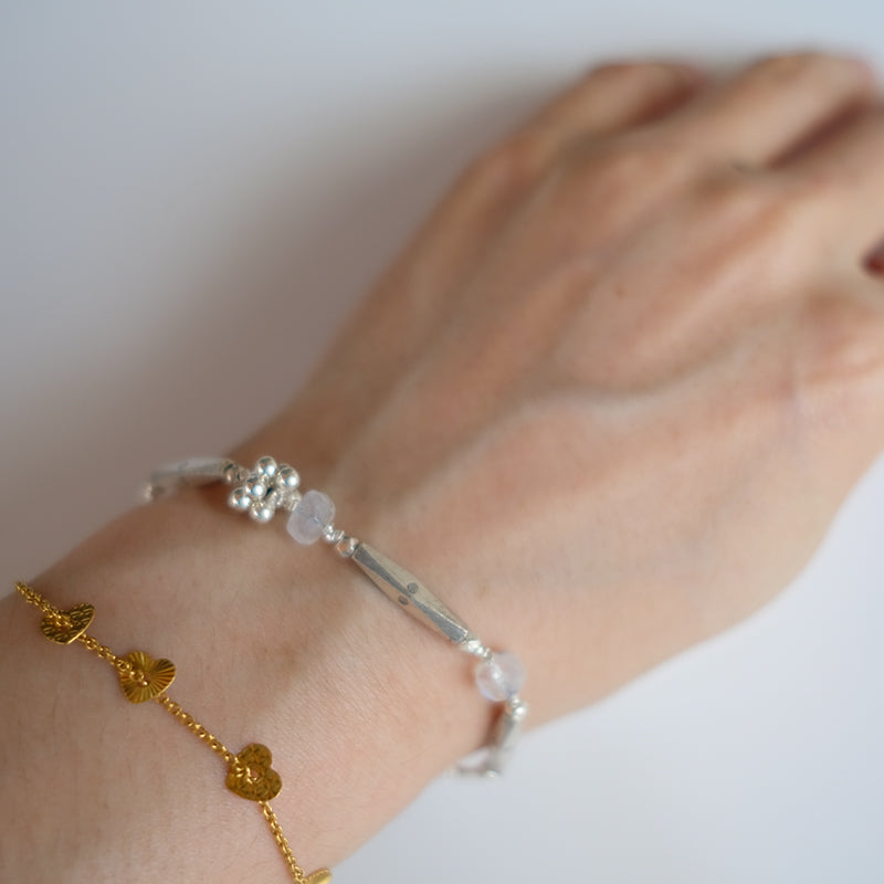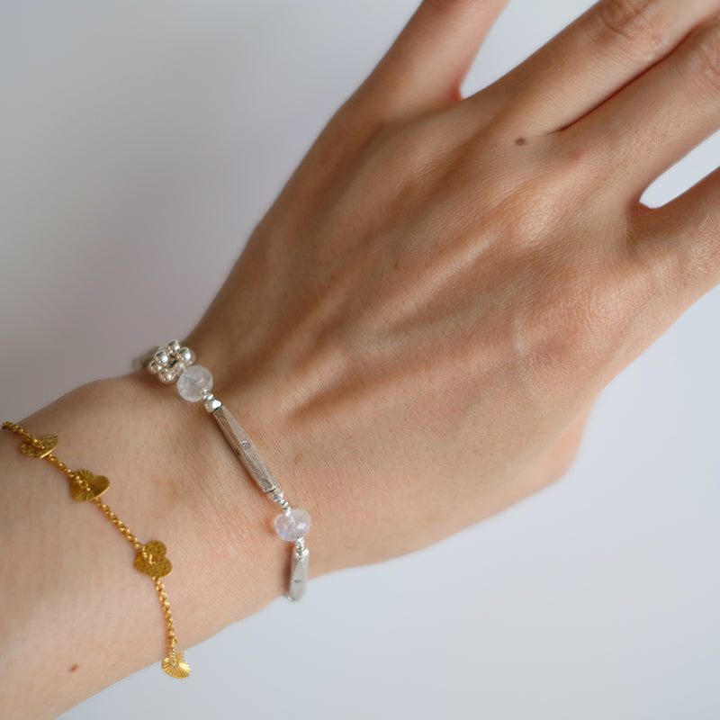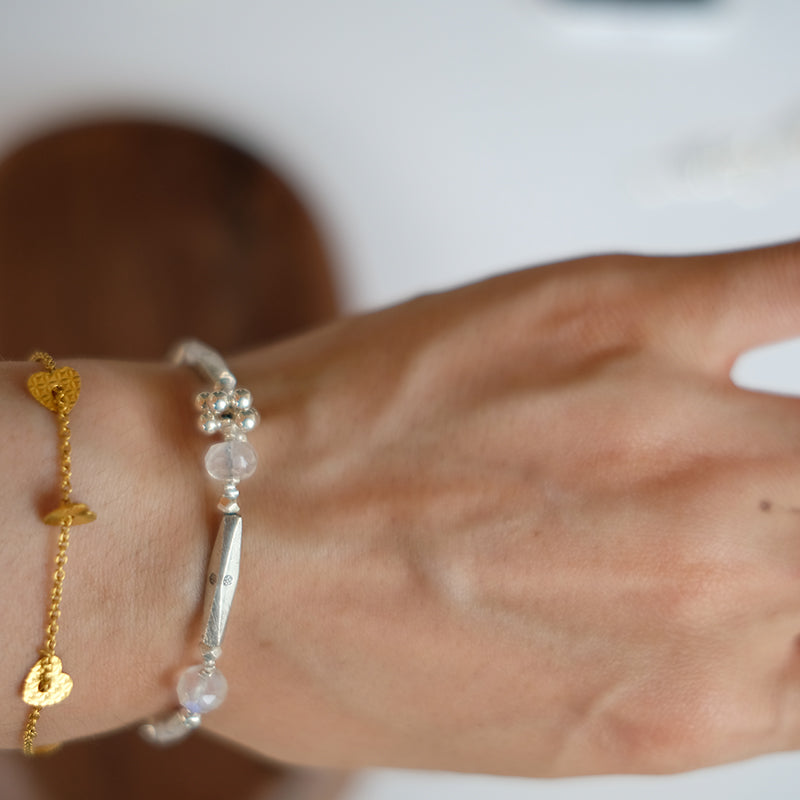 - Moonstone: The bracelet features moonstones, which are known to bring calmness and reduce stress levels. The smooth, round stones add a touch of elegance and sophistication to the design.