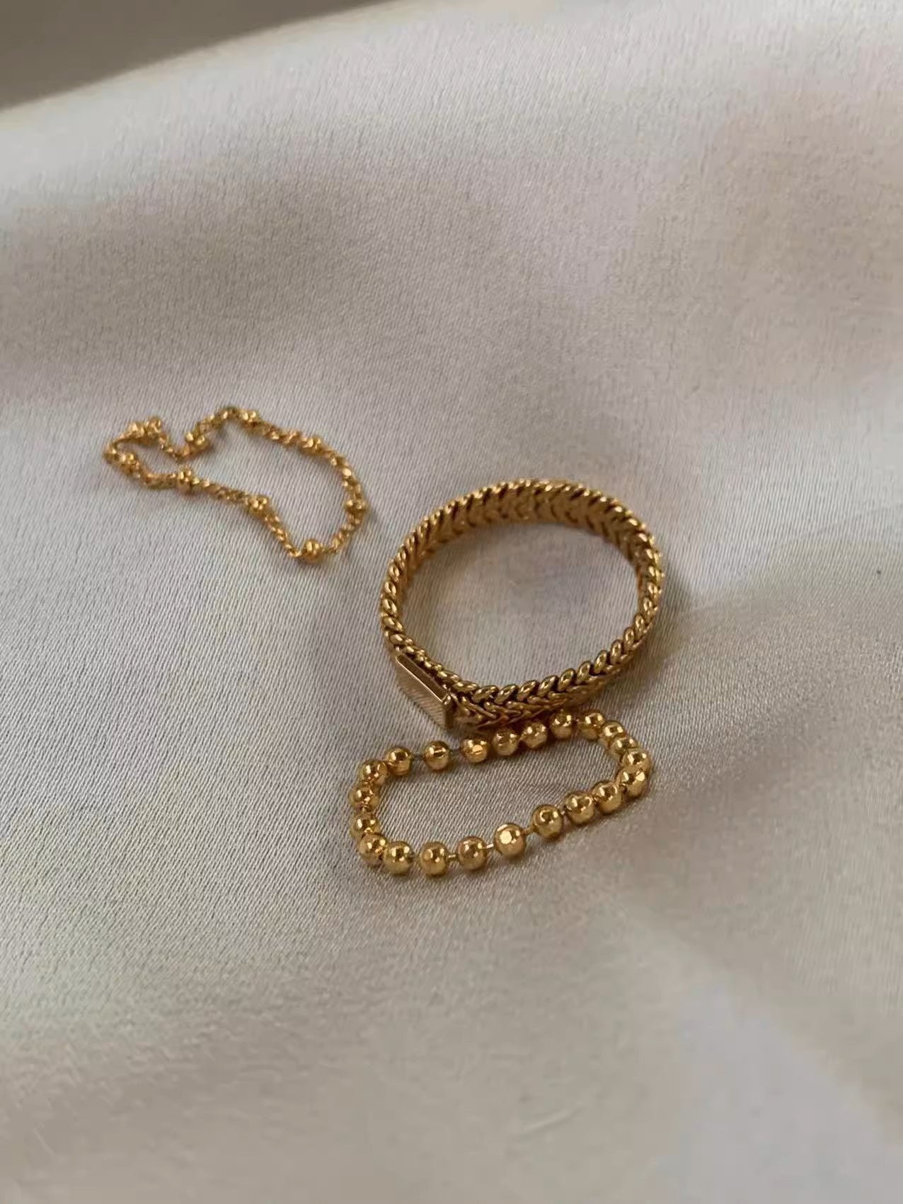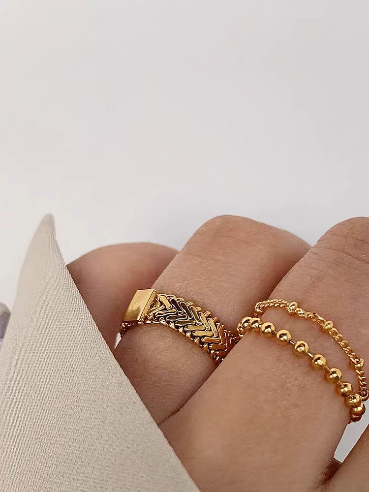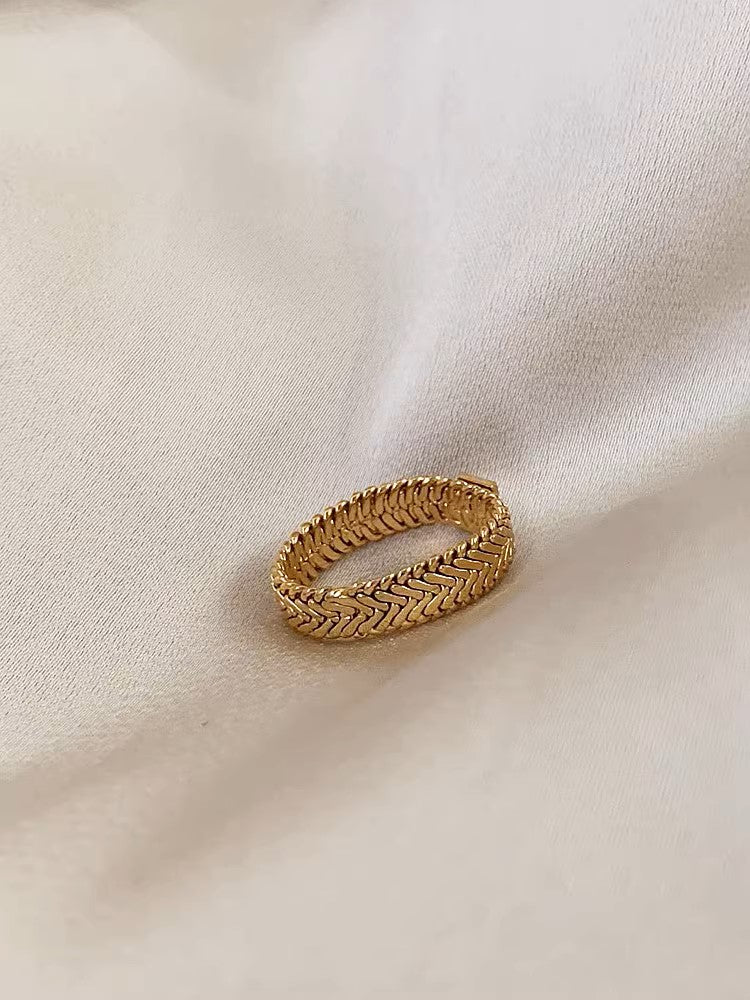 MoJone Vintage Snake Bone 18K Gold-Plated Ring, Soft Chain Ring, for Female