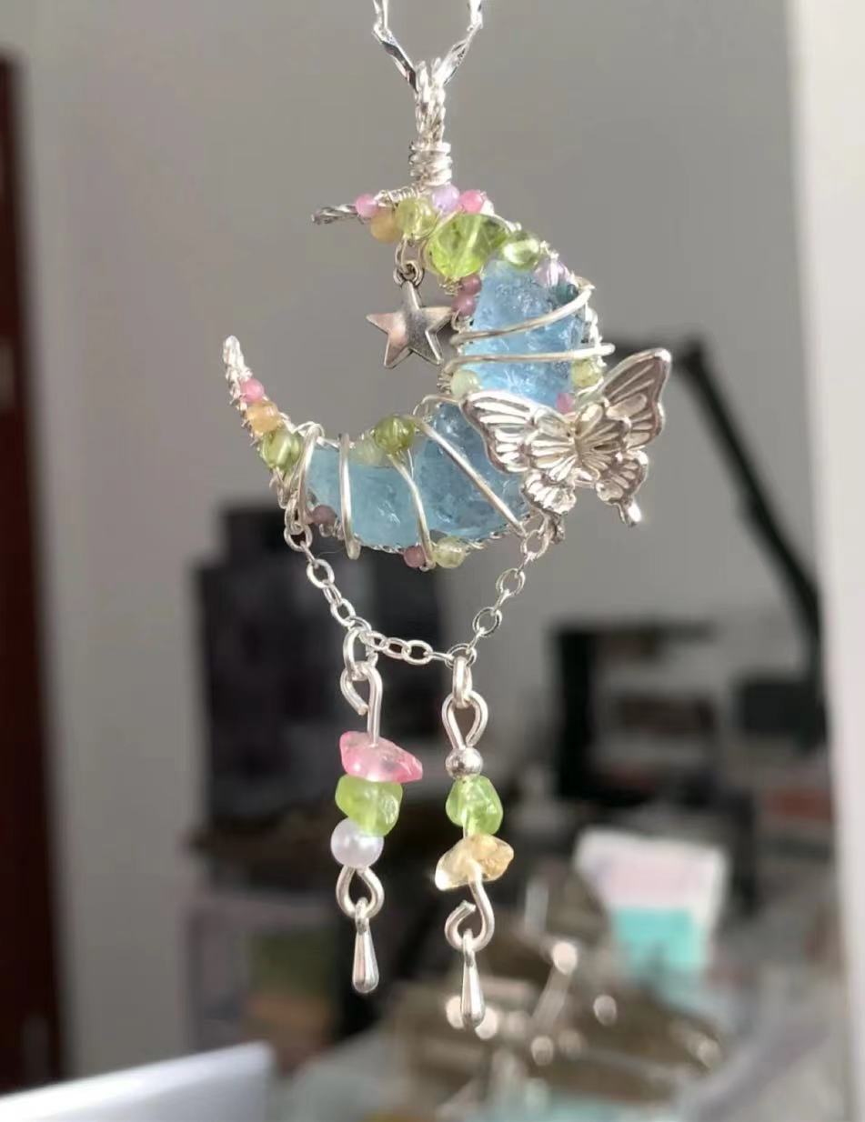 Moon crystal pendant with unique characteristics, personalized and niche style necklace