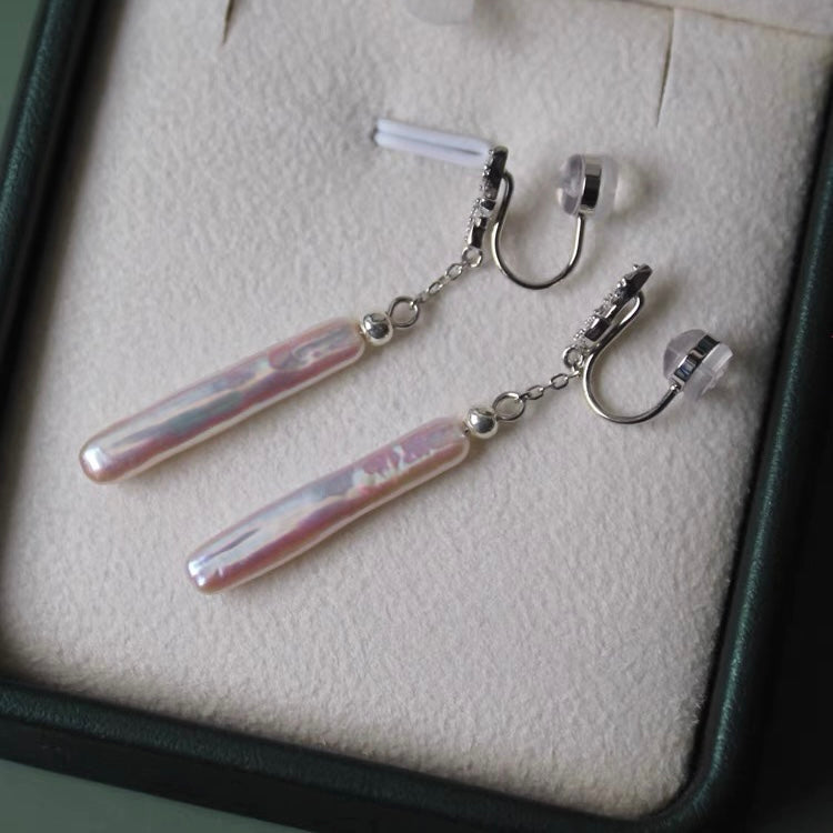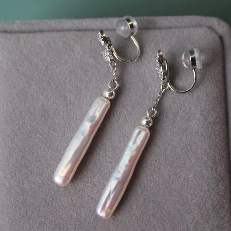 Natural Baroque Pearl Clip on Earrings No Piercing Long Tangle Tassel Sterling Silver Earring for Women
