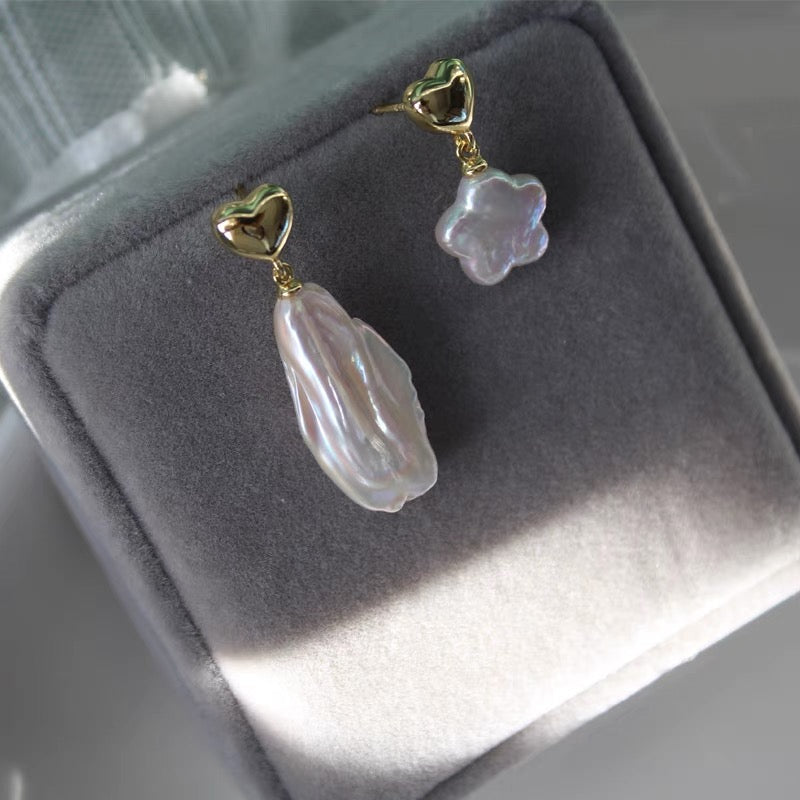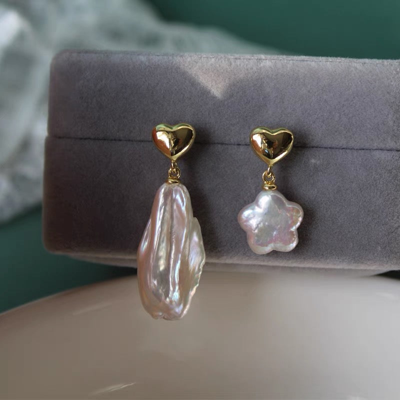 The earrings with irregular pearl make for an elegant addition to any outfit. These pearl earrings' design can go with everything from suspenders to evening wear, and the highly polished and shiny pearl highlights your one-of-a-kind personality making you graceful and unique. Classic combination with the fashion trend.