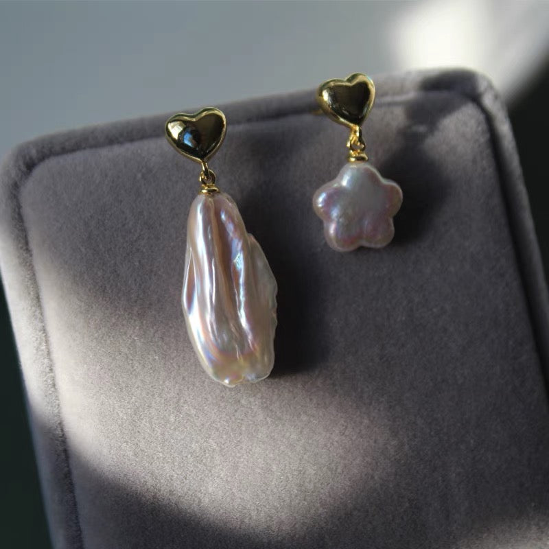 Natural Baroque Pearl Earrings Dainty Flower Floral Pedal Irregular Dangle Earring Fashion Trendy Charm Jewelry