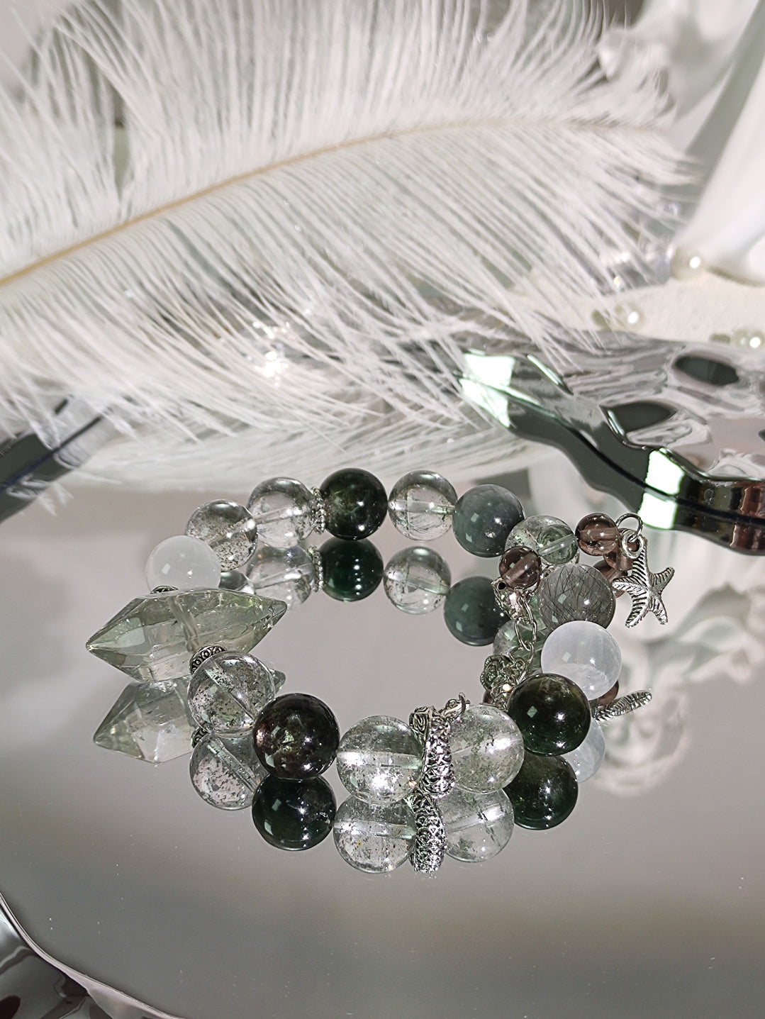 Dive into the captivating allure of nature with our Natural Green Phantom Crystal Bracelet, featuring Green Lithium Muscovite and Hawk's Eye Stone. This bracelet is a testament to the raw beauty of the earth, crafted for those who appreciate the unique splendor of genuine crystal formations.