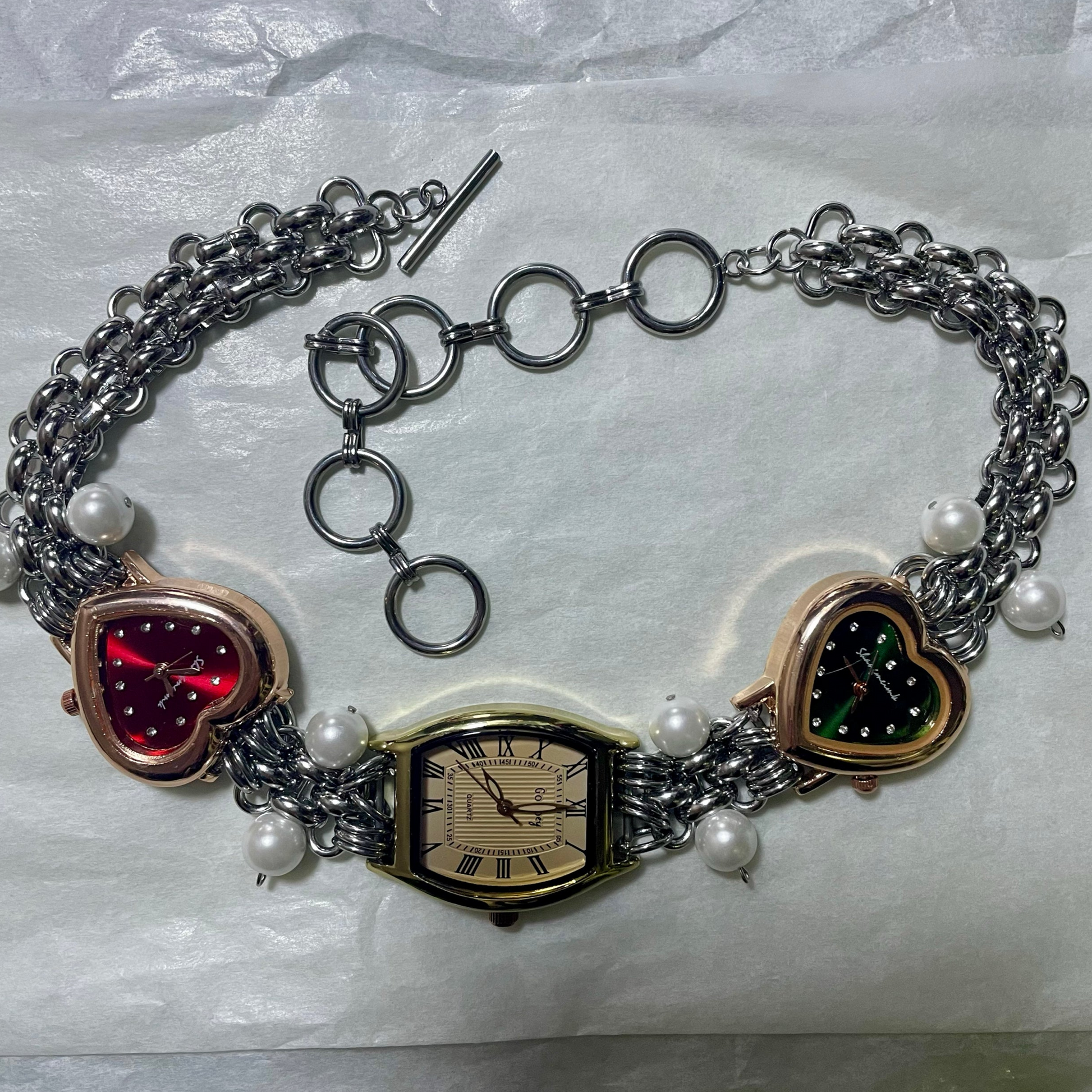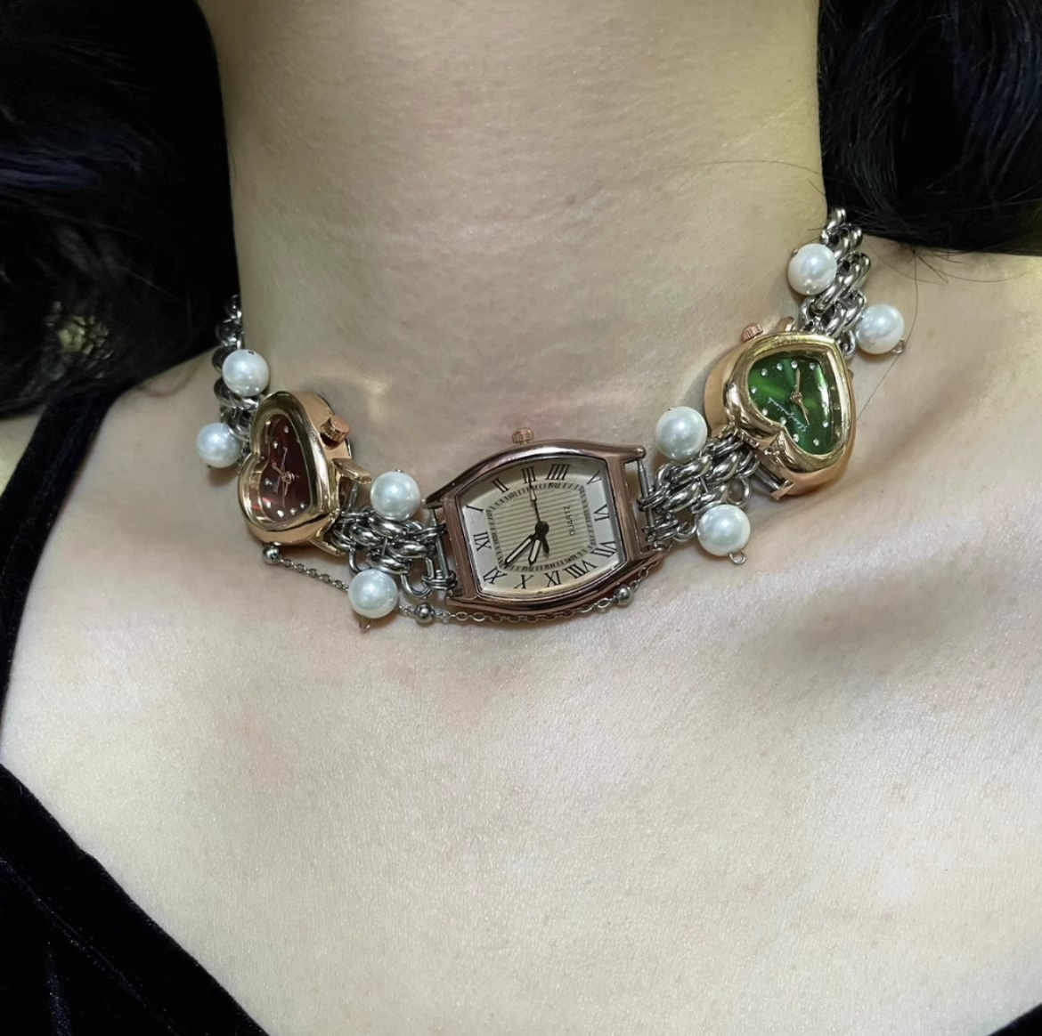 Niche Retro Punk Pearl Vintage style Watch Choker Necklace