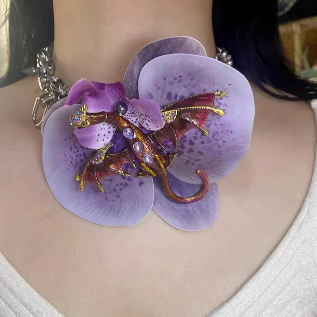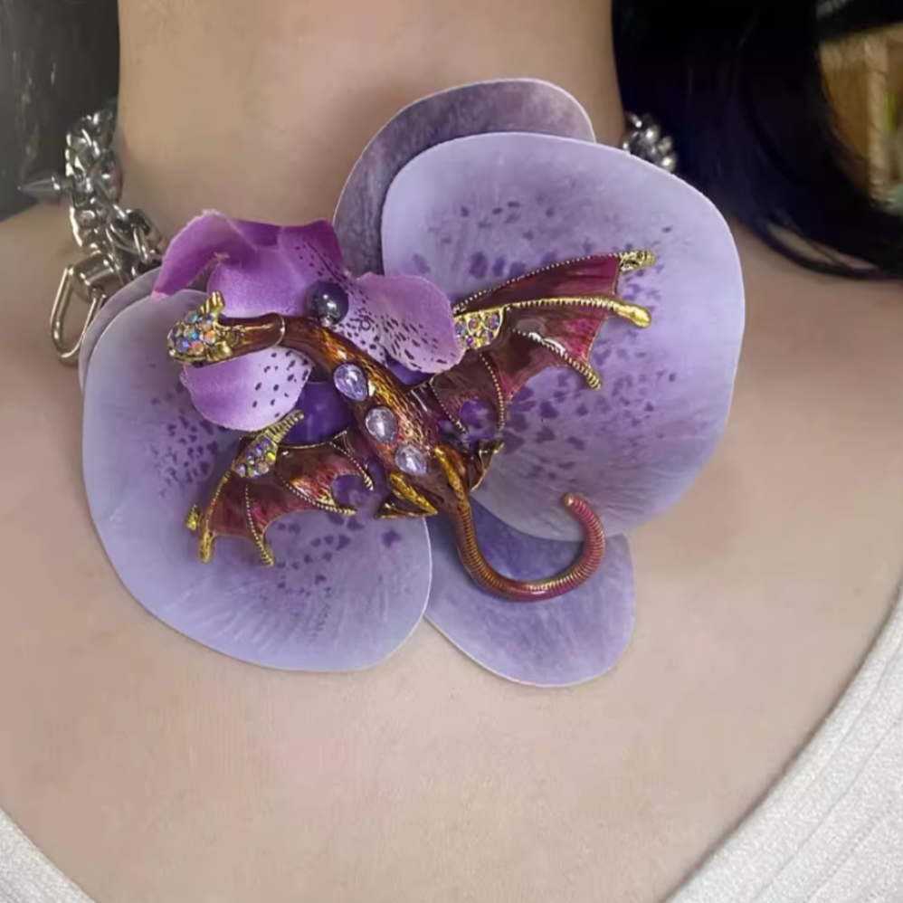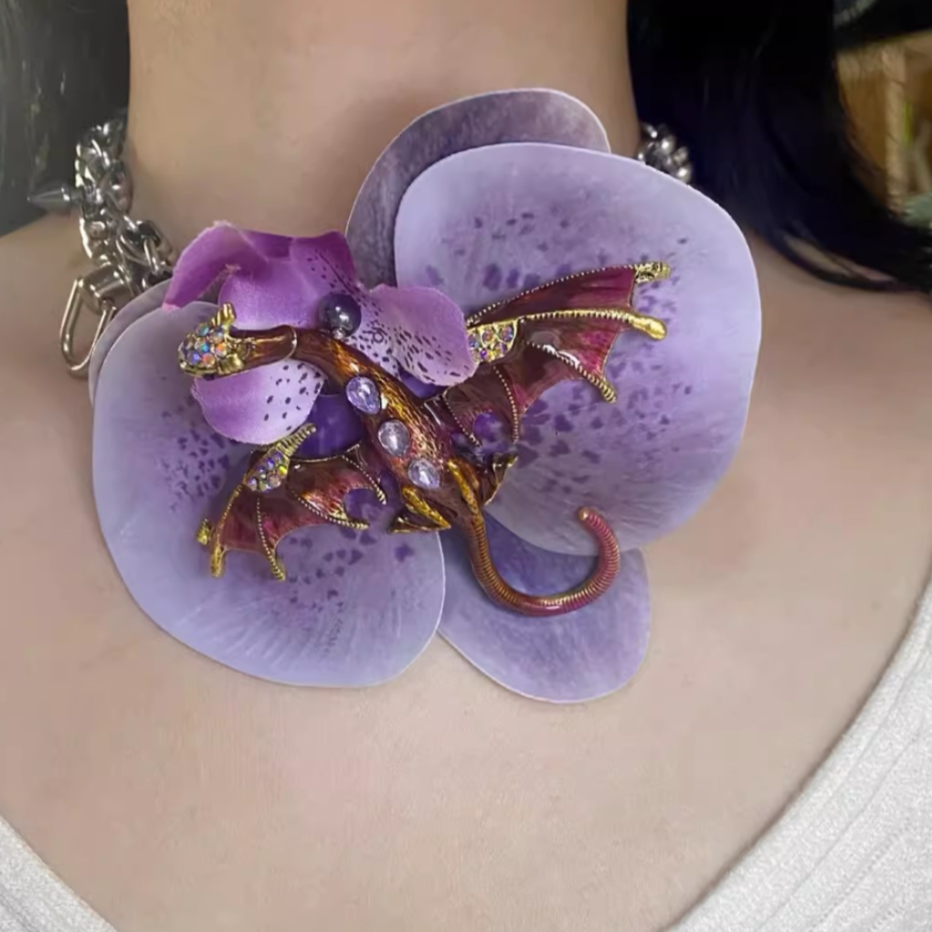 This necklace is made of titanium steel for the chain, leather for the choker, and a variety of materials for the pendant (including but not limited to plant flowers). This item is small-scale handmade necklace with a wandering wind and atmosphere, made of pearl and titanium steel with a pattern of butterfly orchids.This handmade necklace, with its unique design and materials, offers a one-of-a-kind experience for those who appreciate the beauty of nature and fine craftsmanship.