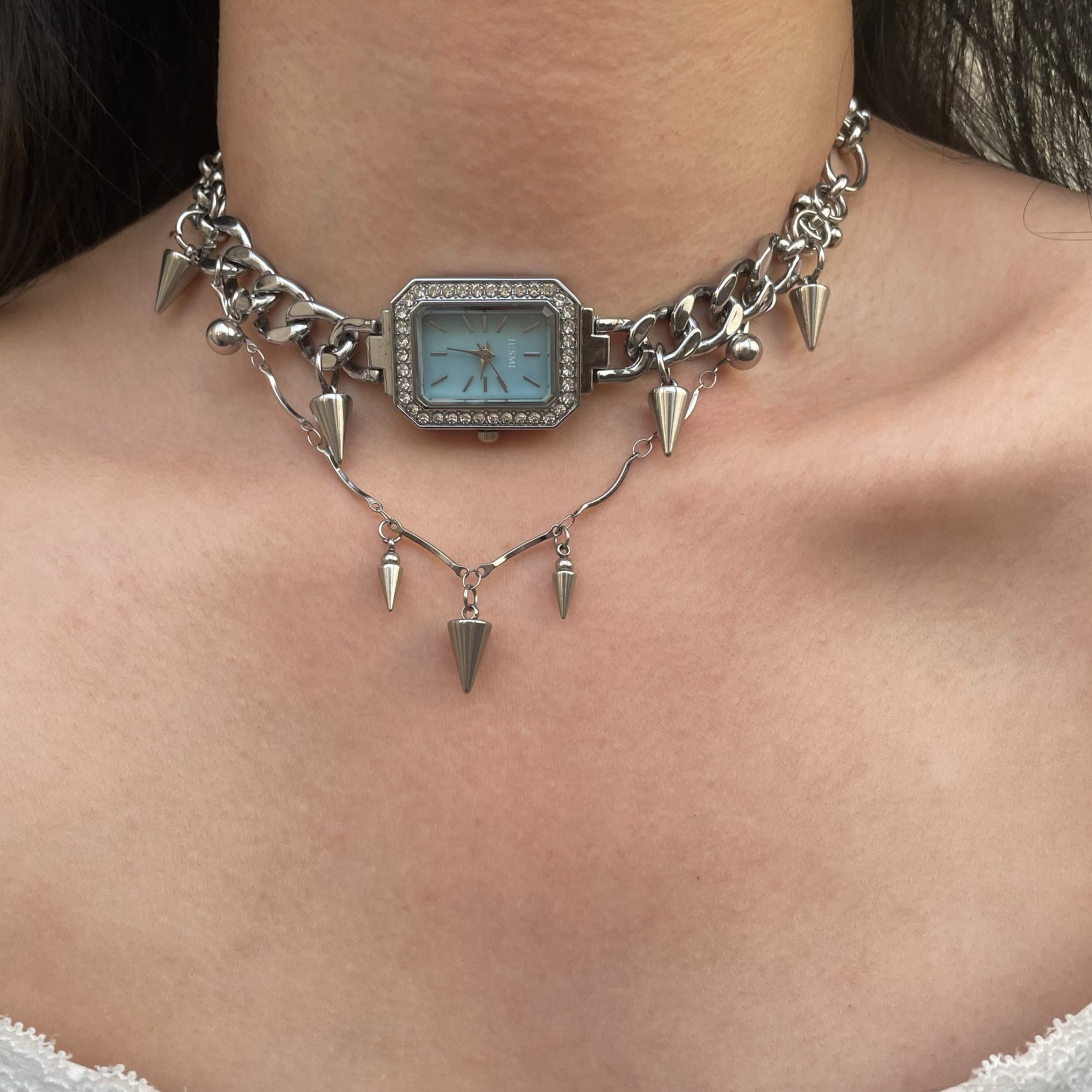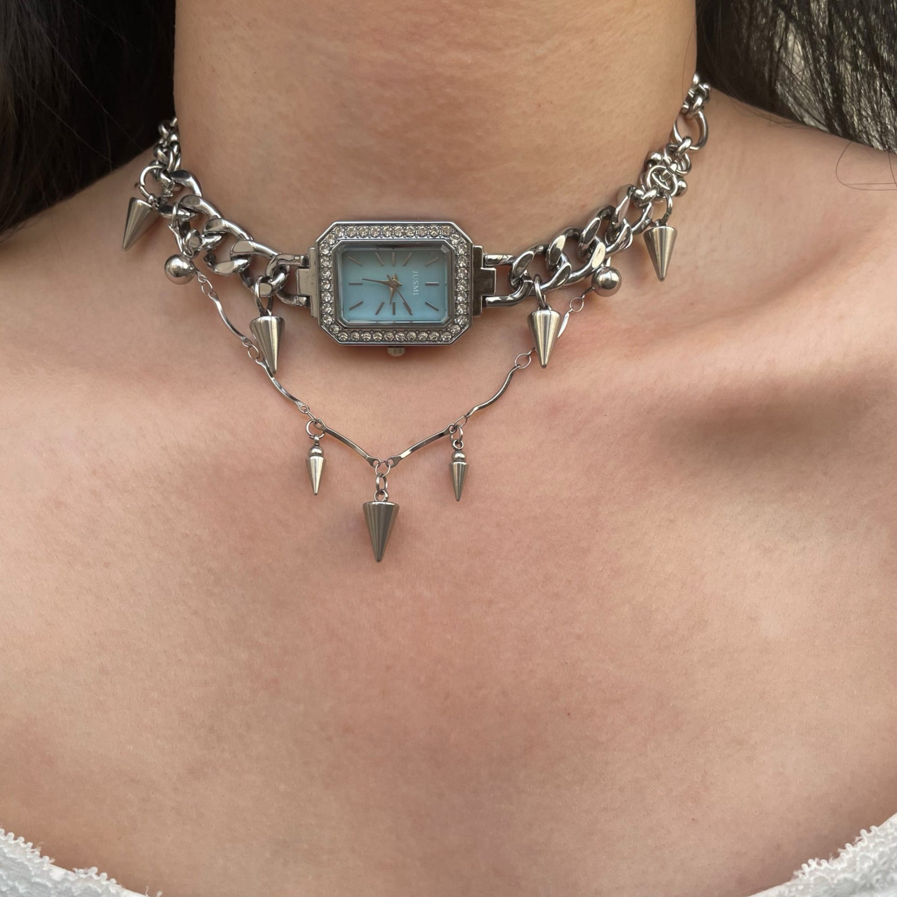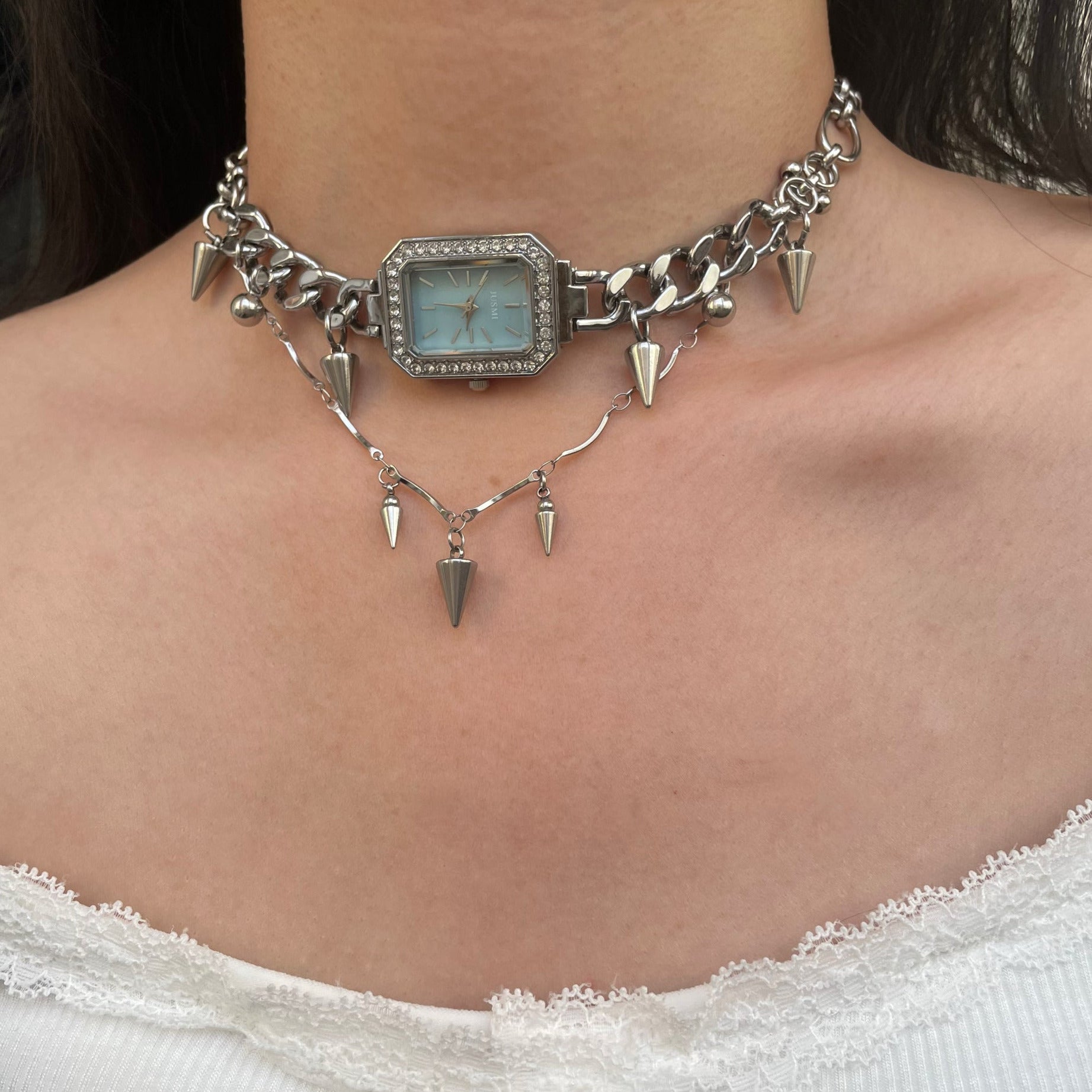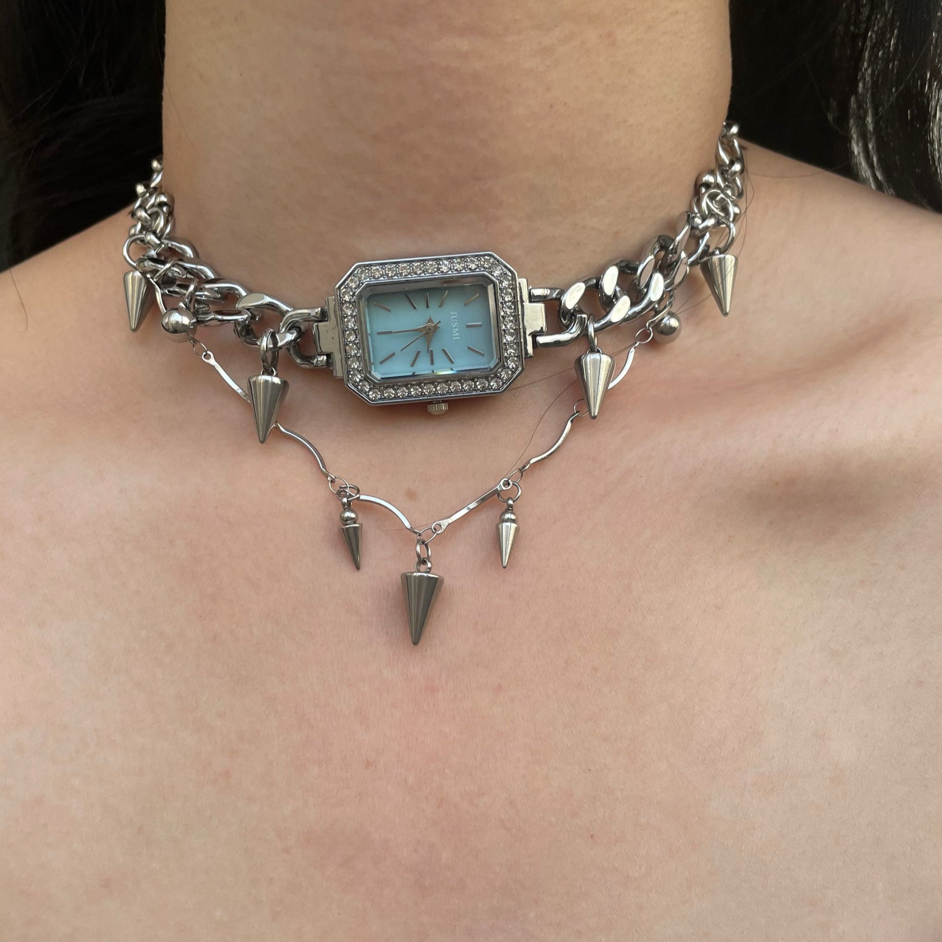 Niche Watch with Titanium Steel Stitched Choker Necklace