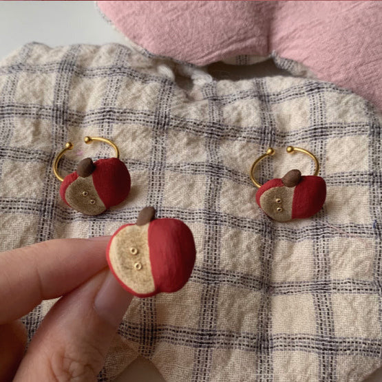 This terra cotta apple ring is retro and adorable gift, the materials are made of earth, with protective layer and not easy to fade, set with mixed metal.(Due to variations in material batches, each piece may differ lightly from the picture, but we strive for close resemblance.)