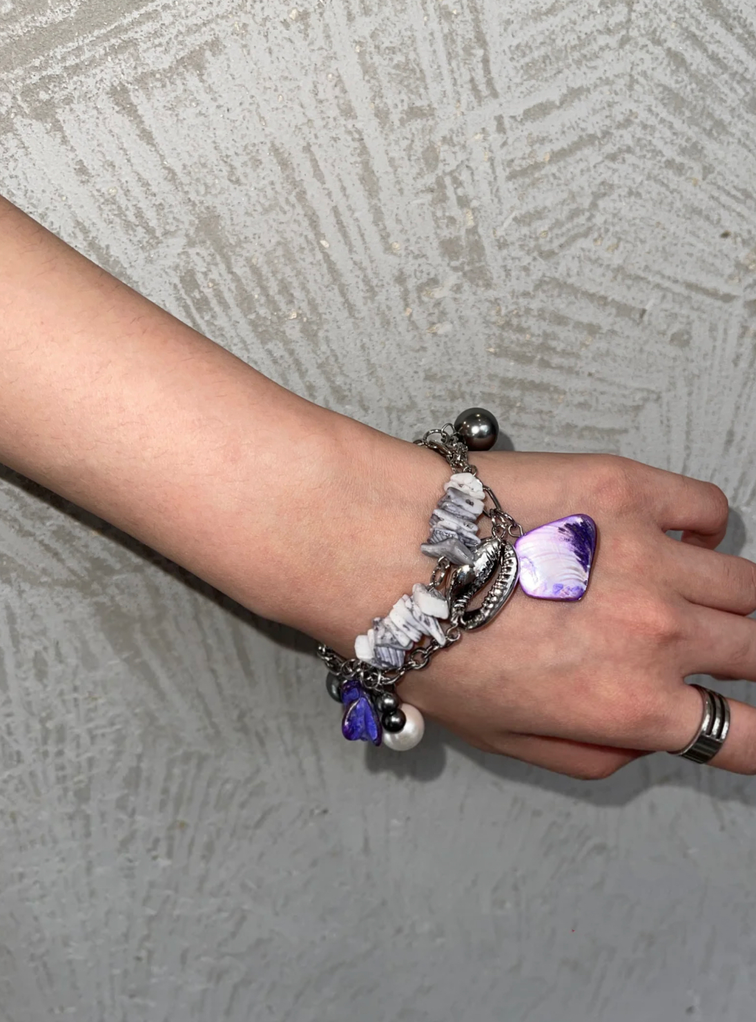 Pearl Beaded Conch Shell Natural Stone Handmade Baroque Bracelet Niche Punk Chunky Wrap Chain