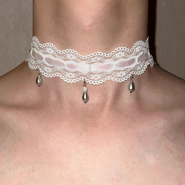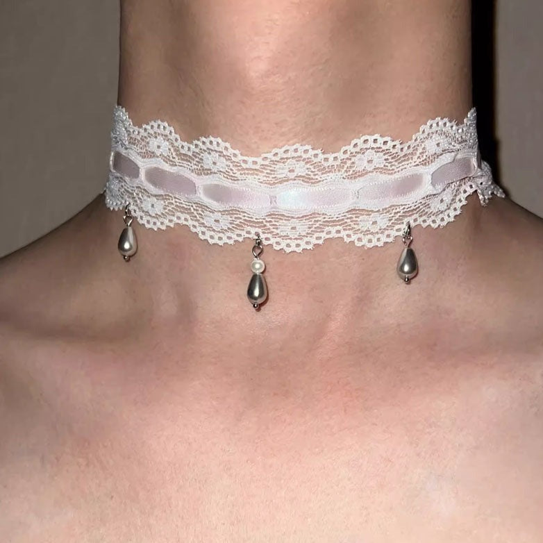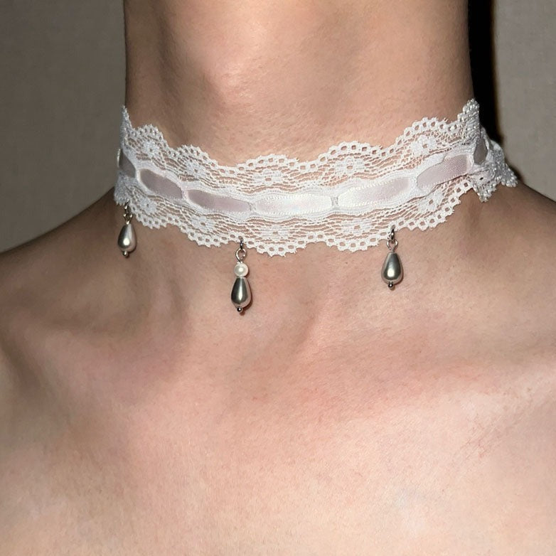 Pearl Lace Choker Necklace Waterdrop Pendant Necklace Choker Vintage Clavicle Necklace Neck Chain for Bridemaids Wedding