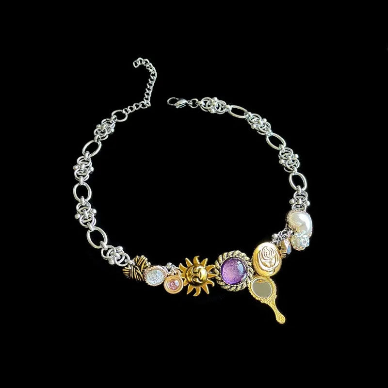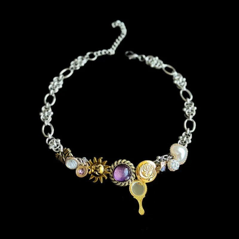 Punk Choker Heavy Industry Titanium Steel Necklace Gorgeous Purple Crystal Pendant for Women