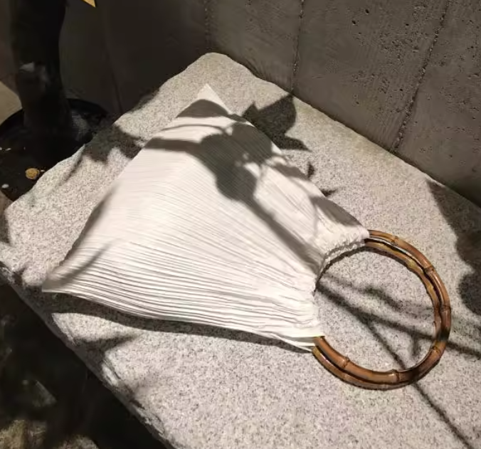 Top Handle Handbags Wrinkled Texture Special White Round Bamboo Knot Handbag Underarm Bag