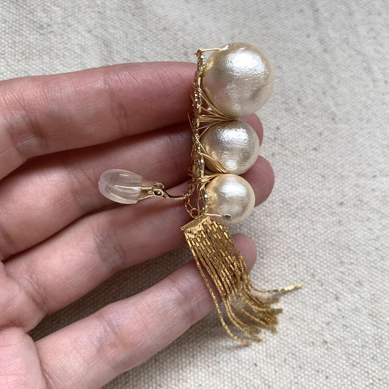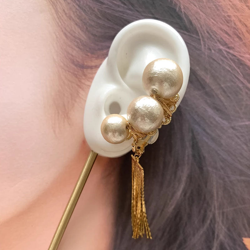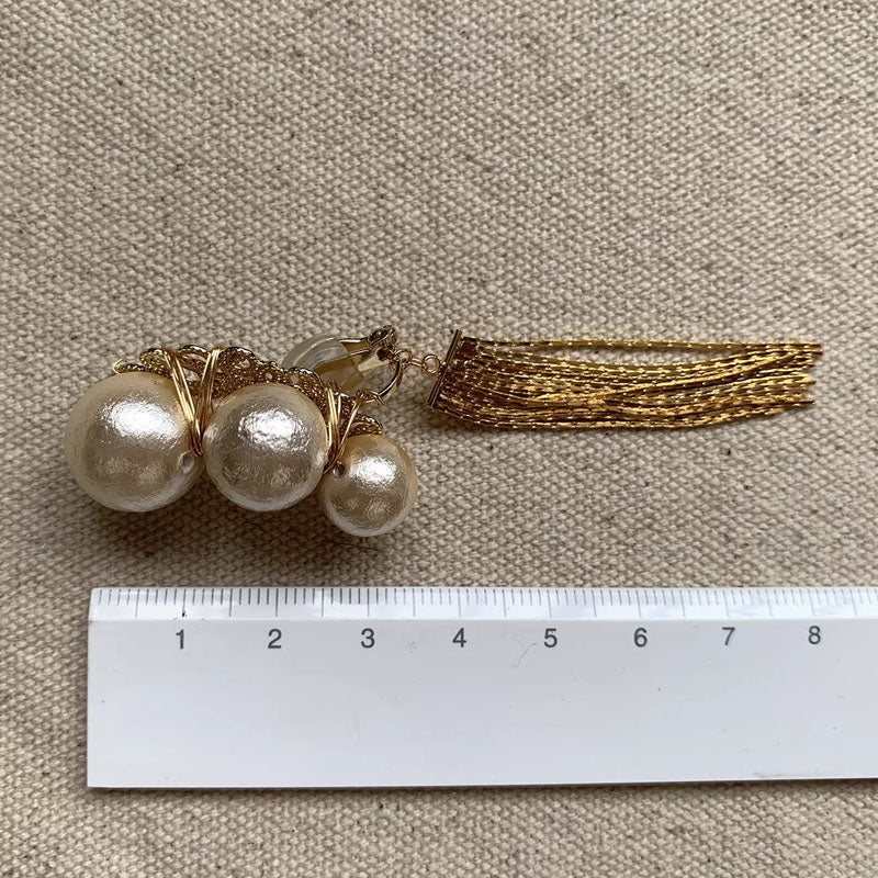 Retro Pearl Tassel Drop Earrings Fashion Vintage Pearl Ear Clip Golden for Women Girls Tassel Ear Clips Statement Jewelry Party Prom Wedding