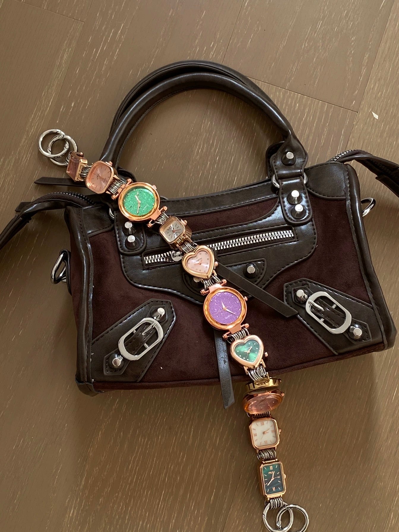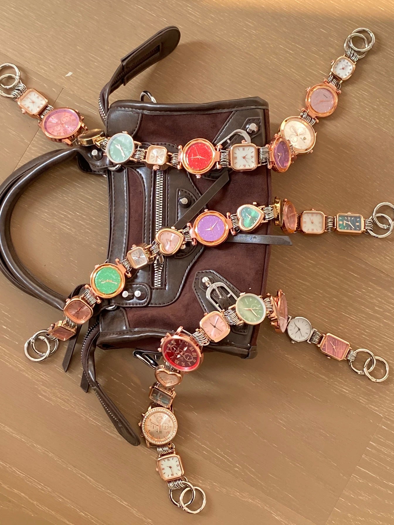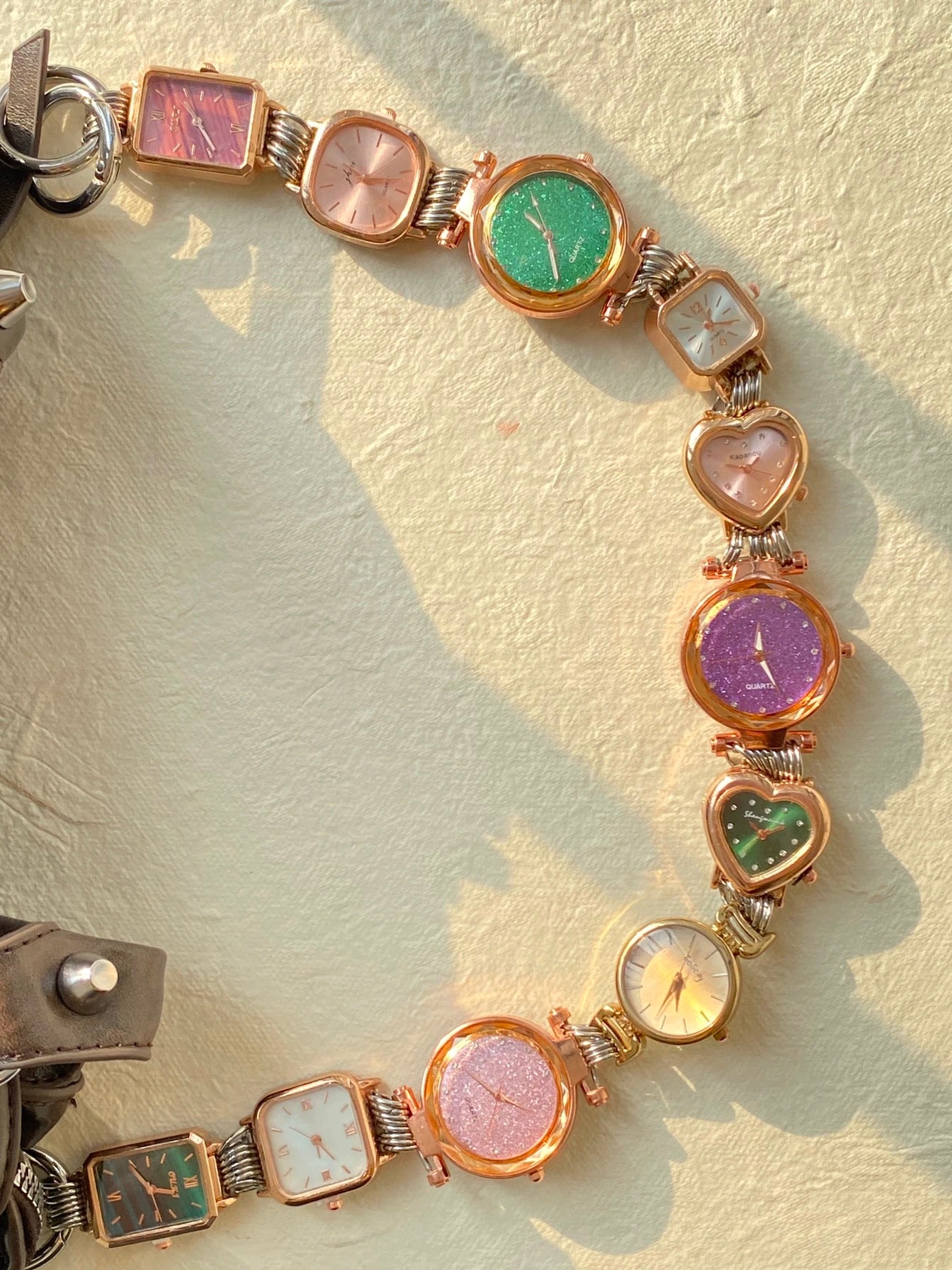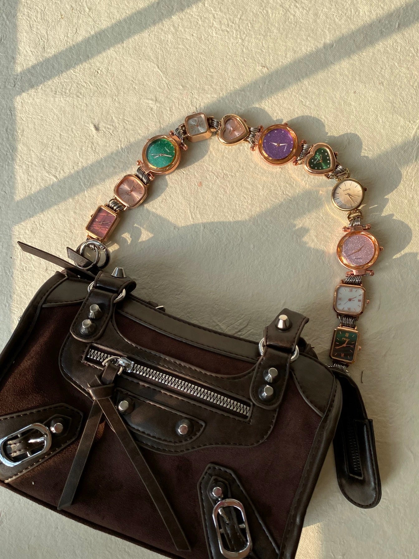 Retro Punk Watch Bag Chain & Watch Belt , Pink Clock Bag Strap