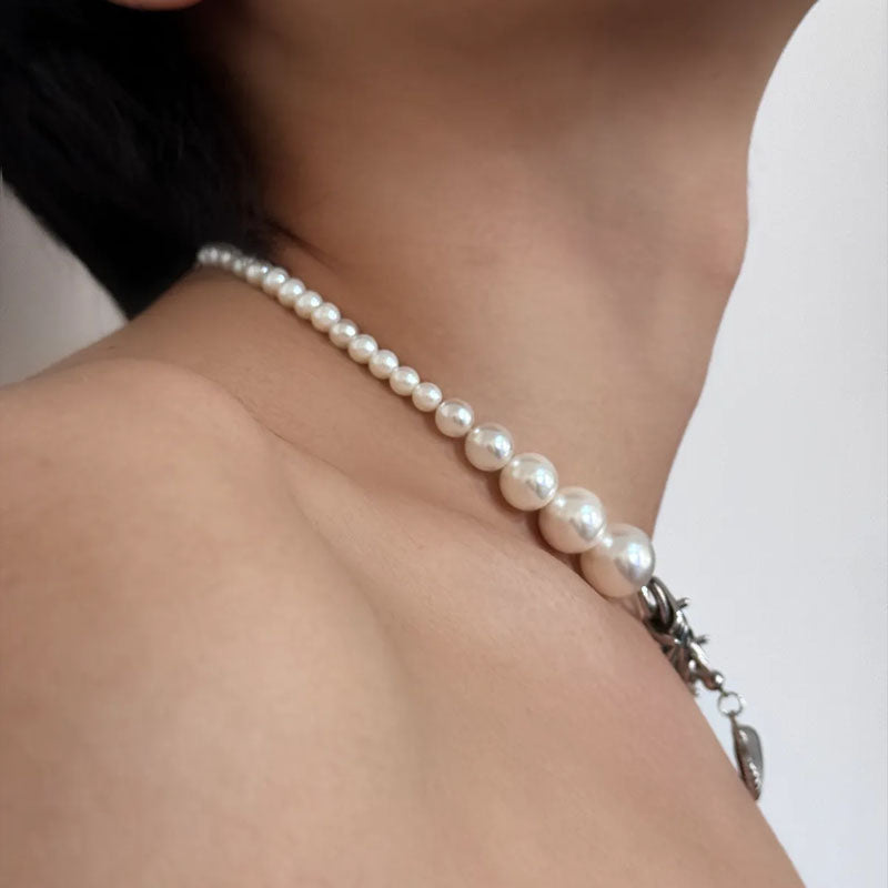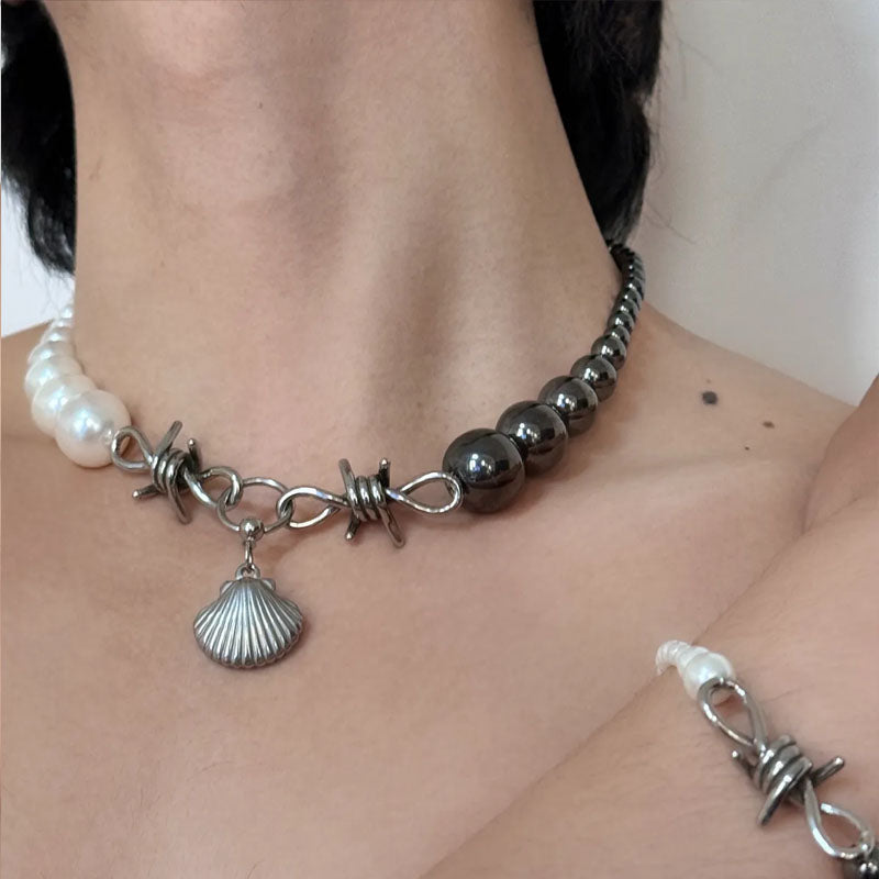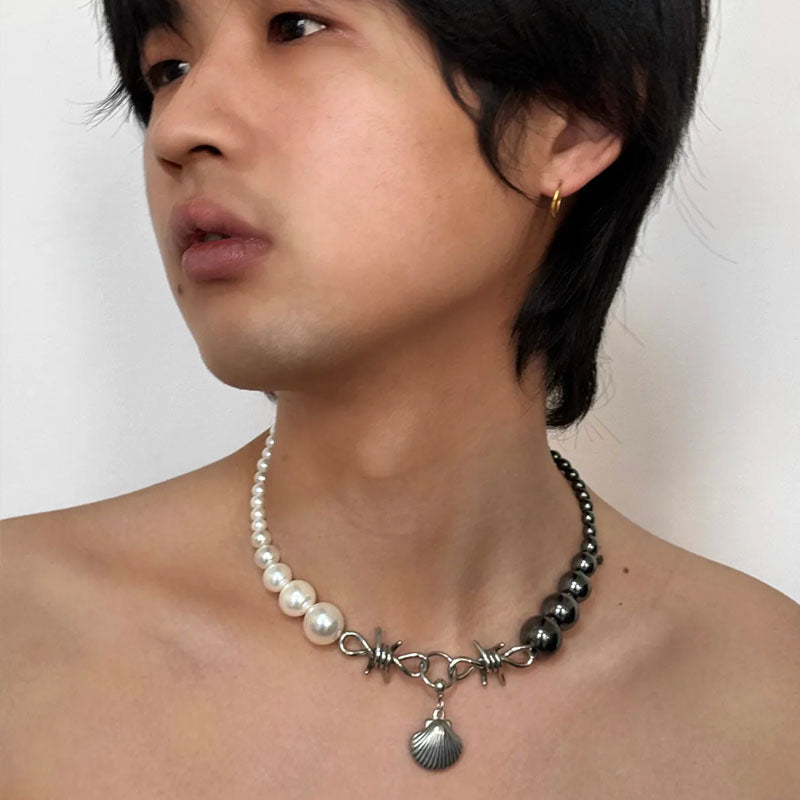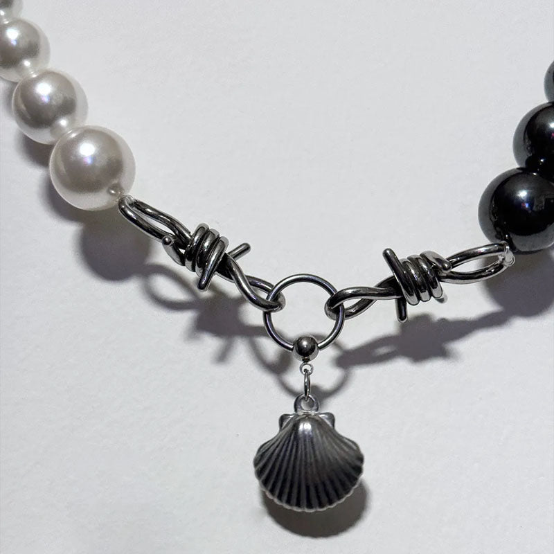 Retro Shell Pendant Necklace Black and White Pearl Patchwork Choker for Women Party Jewelry Mother's Day Gift